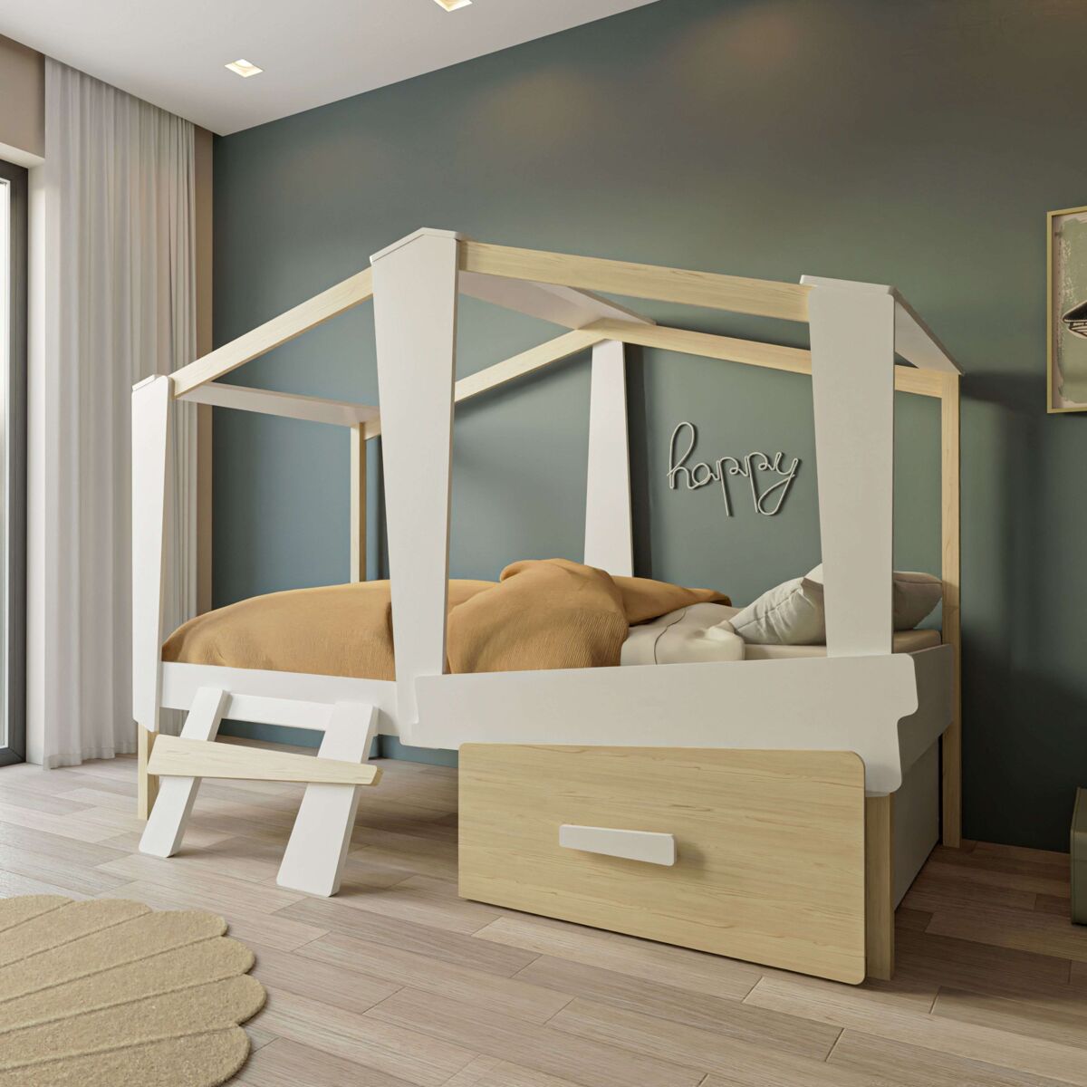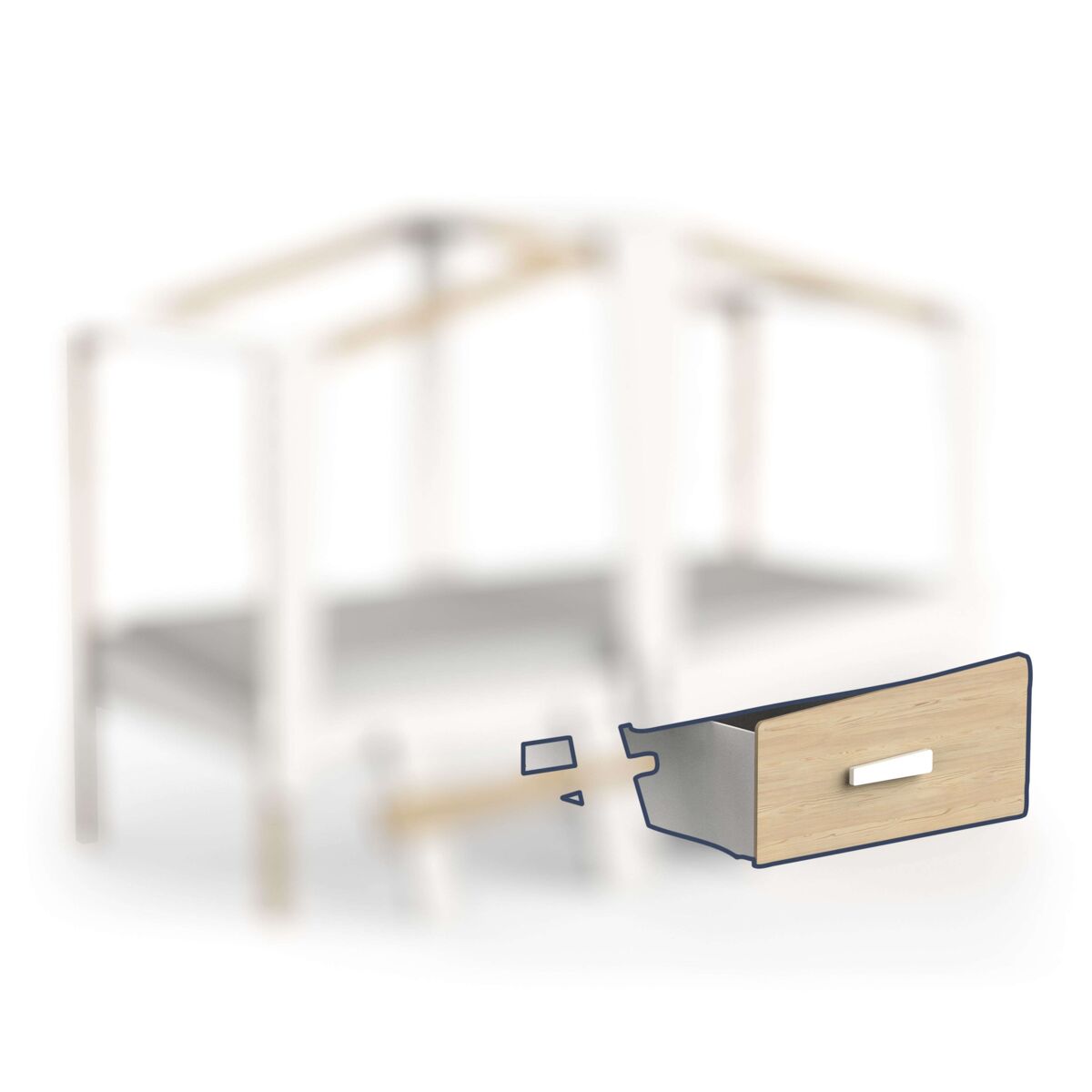 Añade ese toque de almacenaje extra que tu dormitorio infantil necesita con el cajón inferior Cabane. Organiza la habitación de tus peques, guarda su ropa o invítales a recoger sus juguetes preferidos, sin perder espacio en la estancia. Fabricado en melamina de alta calidad en blanco mate y roble claro, este cajón es fácil de montar, de añadir a tu hogar y de combinar con el resto de elementos decorativos. Añádelo al carrito, muestra a los más pequeños su funcionalidad y dile adiós a los problemas de almacenaje. Tu gran aliado diario está aquí para aprovechar cada rincón y hacer de tus espacios lugares amplios y recogidos. Medidas: Ancho 97.70 cm Alto 40.70 cm Profundo 86.40 cm. NO se incluye la litera ni los elementos decorativos de las imágenes. Se trata de mobiliario con kit de montaje, que incluye manual de instrucciones y tornillería.