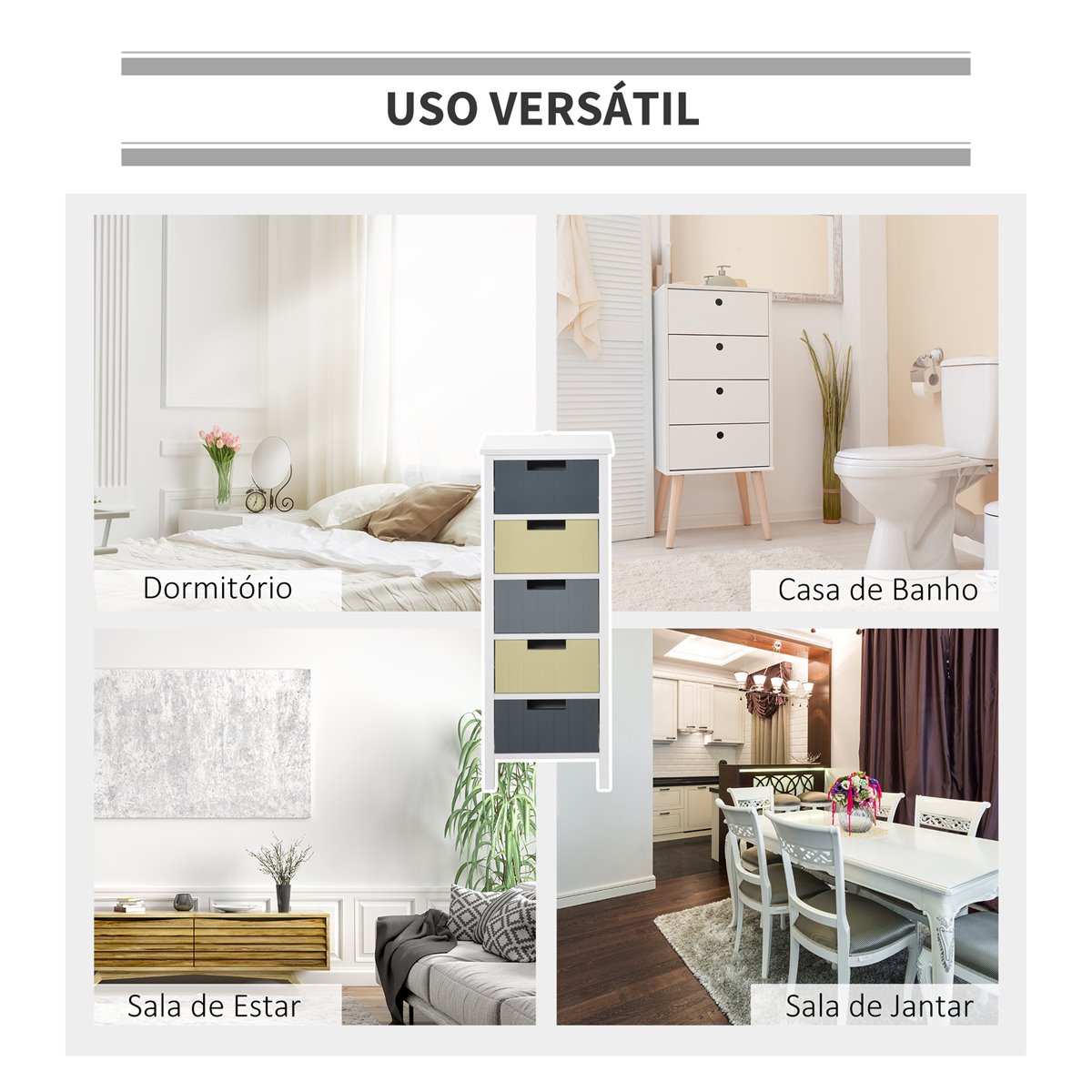 ¿Estás buscando una cajonera bonita y funcional? Esta cómoda de noche de HOMCOM es la combinación perfecta entre modernidad, originalidad y ahorro de espacio. Fabricada con una resistente estructura de MDF, cuenta con 5 cajones con frontales de diferentes colores y una amplia encimera para tener tus objetos de decoración expuestos. ¡Es la solución perfecta para cualquiera que busque espacio de almacenamiento extra!