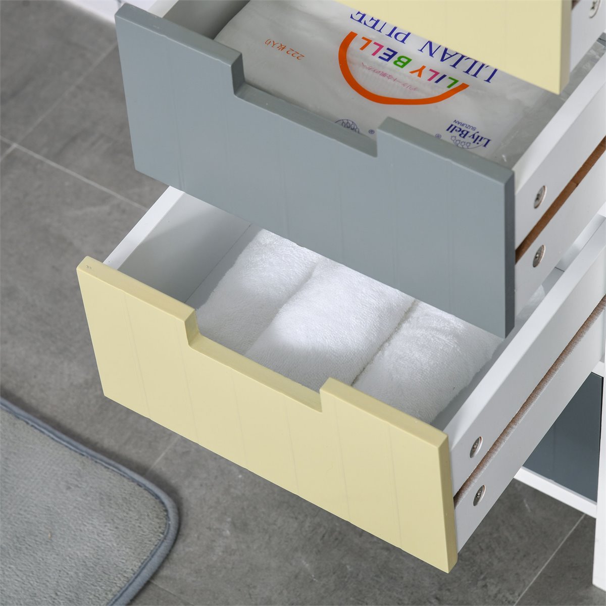 - Color: marco blanco y cajones gris oscuro, gris claro y beige