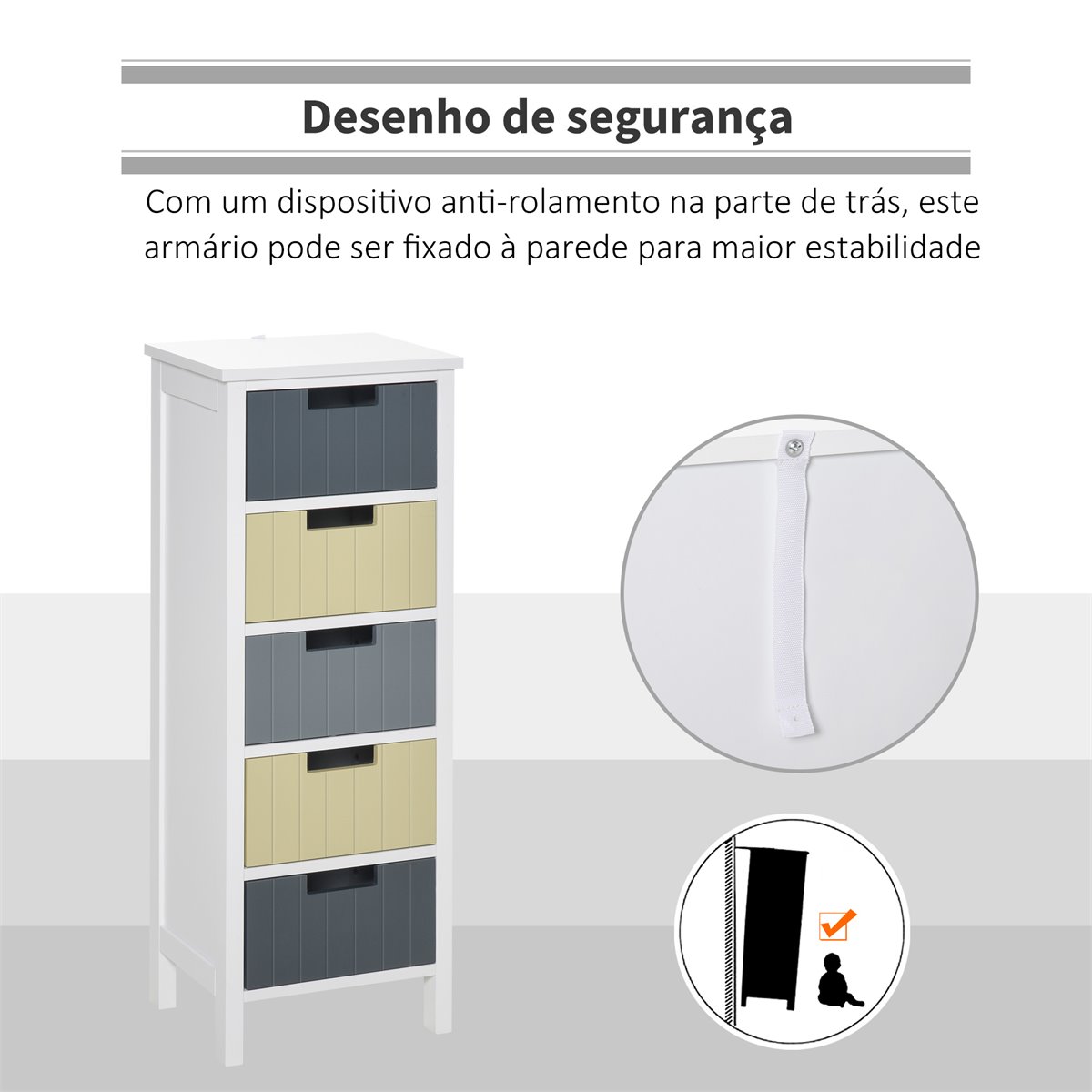 - Cajonera con 5 cajones, 1 en cada nivel, hecha de MDF resistente