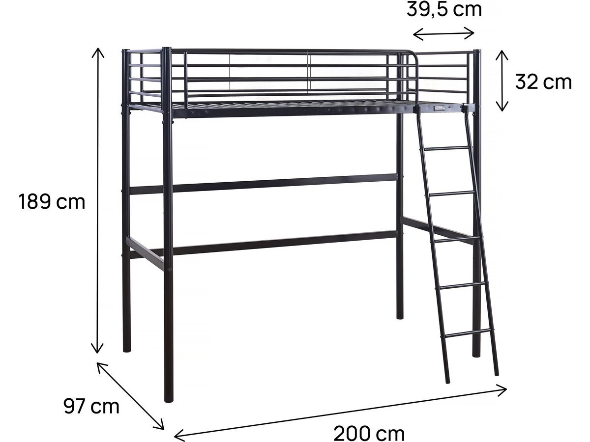 Descripción : Litera de metal Alora - Dimensiones: 200 x 97 x 189 cm - Dimensión del somier: 90 x 190 cm (colchón no incluido) - Negro