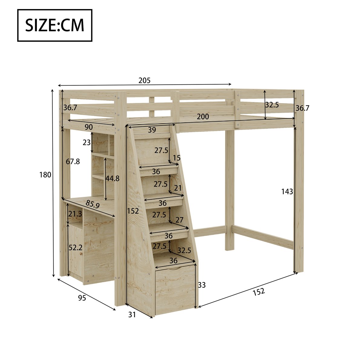 - Diseño de cama alta optimizado para ahorrar espacio: Con una estructura elevada de 90x200 cm, este loft maximiza el espacio vertical, liberando el área inferior para almacenamiento, área de trabajo o zona de juegos, ideal para habitaciones pequeñas o compartidas.