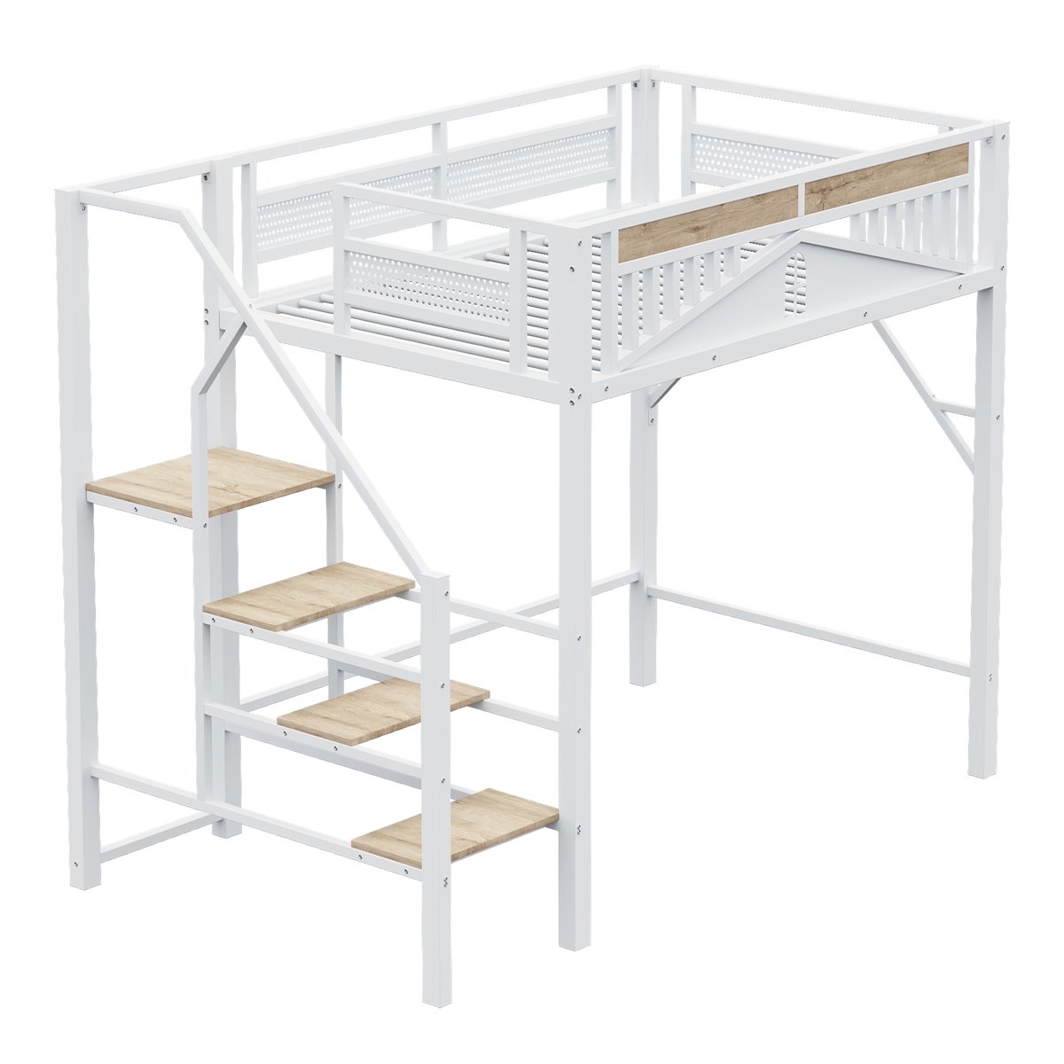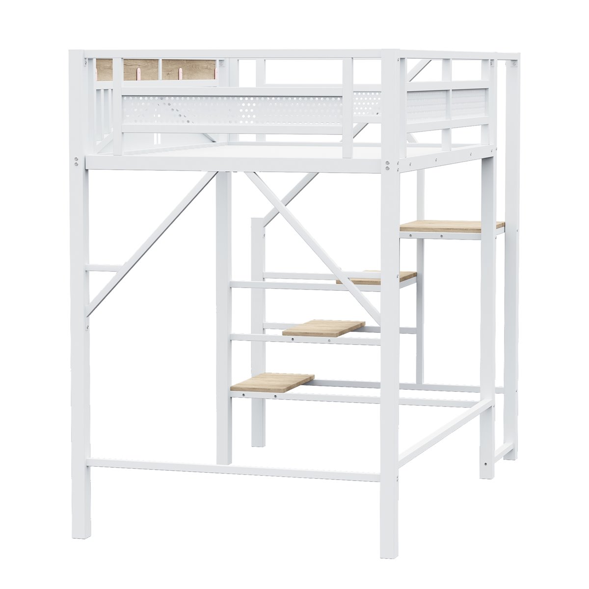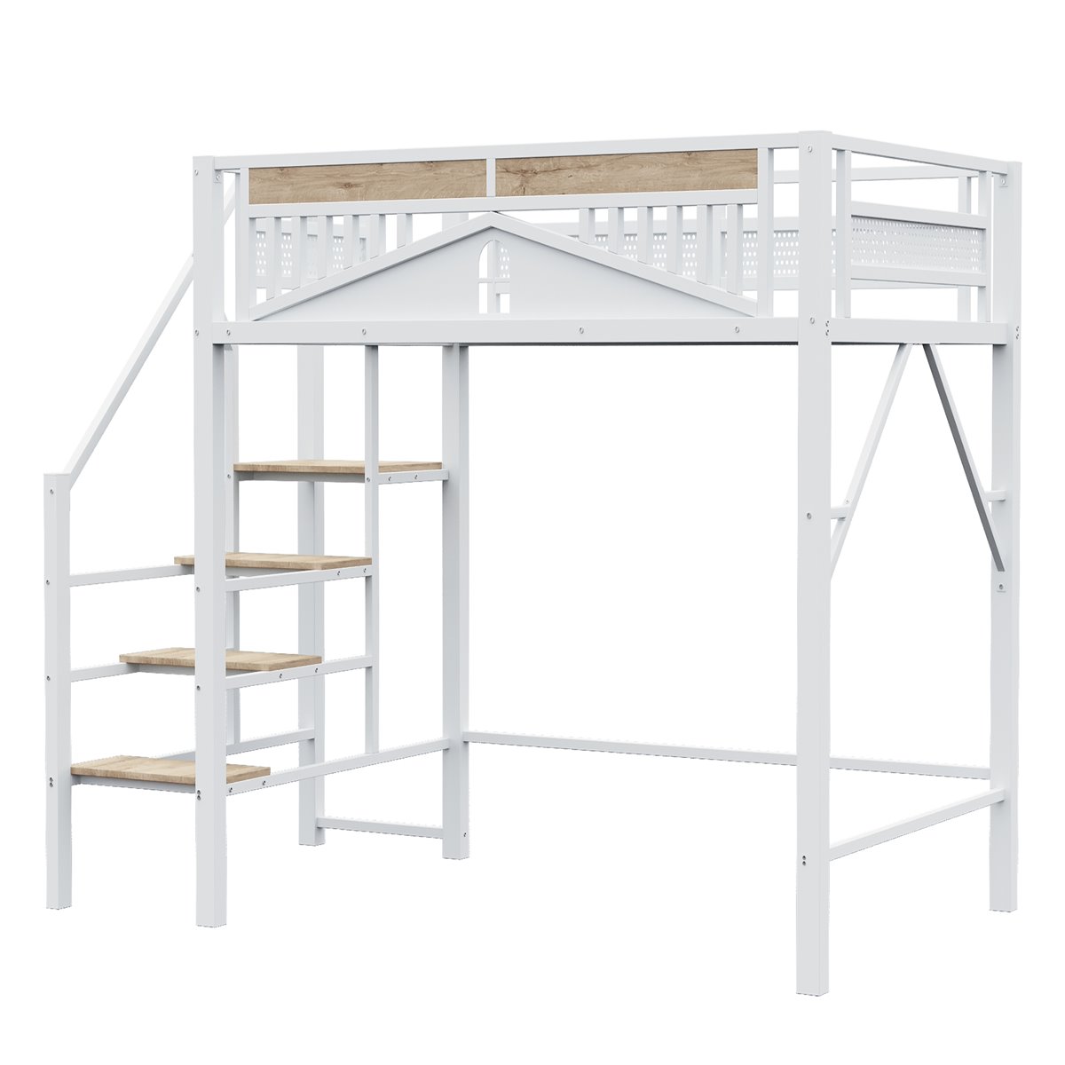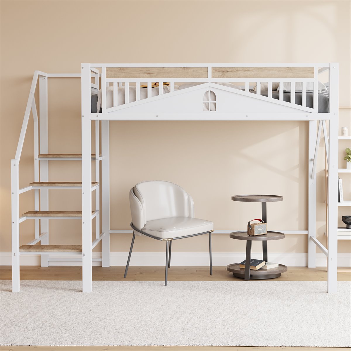 Este loft metálico de 140x200 cm combina seguridad, funcionalidad y estética, siendo ideal para habitaciones con poco espacio. Con un robusto marco de metal y disponible en blanco, este loft presenta una estructura con una escalera de seguridad lateral, un diseño único de ventana en el panel lateral y un gran espacio de almacenamiento debajo, perfecto para organizar juguetes, libros o materiales de estudio.