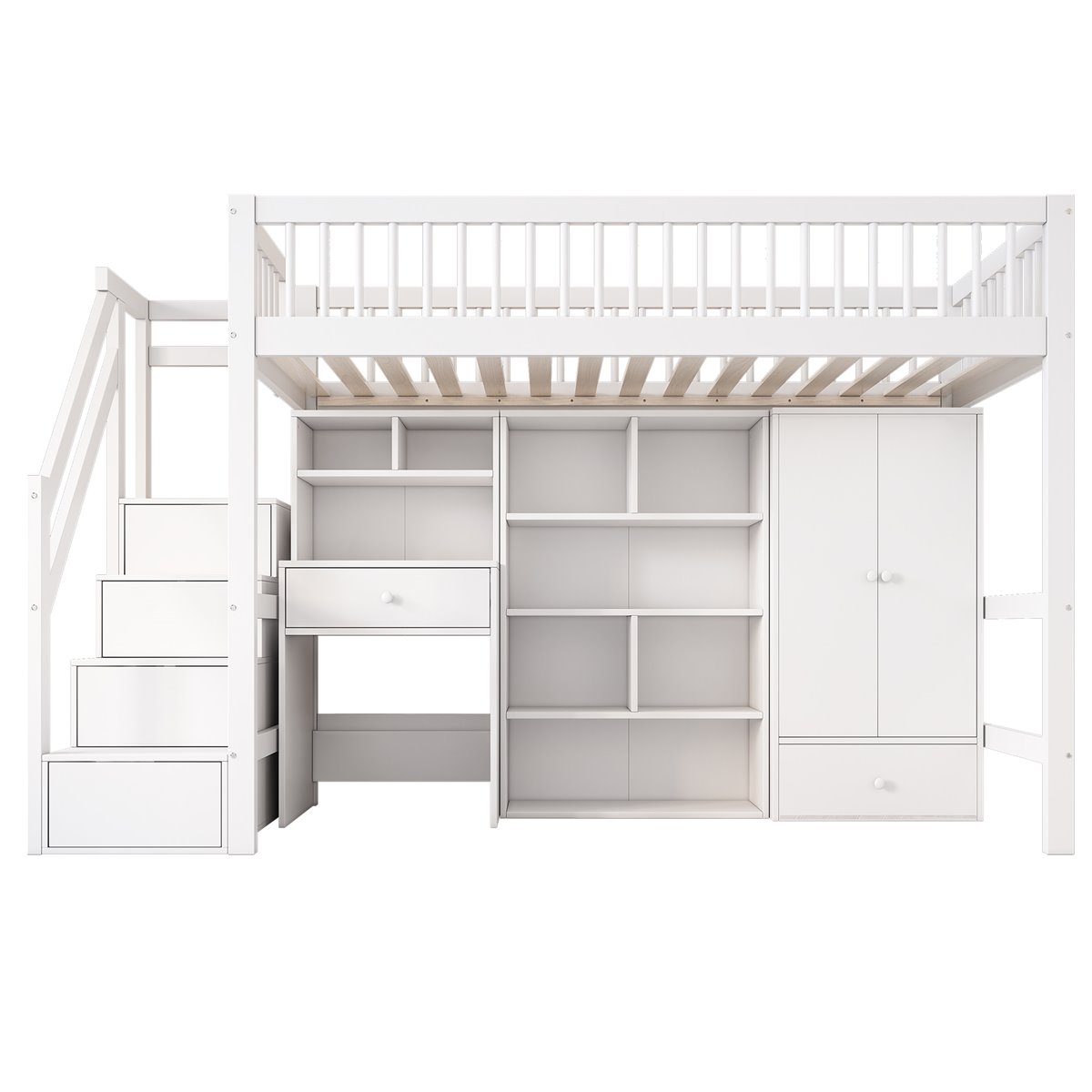 - Incluye: Escritorio, escalera con almacenamiento, cajones, casilleros y armario