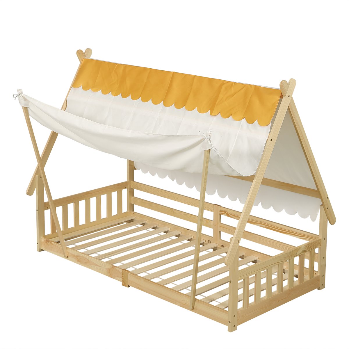 Exquisito diseño de casa de madera: La cama luce un atractivo diseño de casa de madera que no solo ofrece una apariencia encantadora, sino que también crea un ambiente acogedor y acogedor en la habitación del niño.