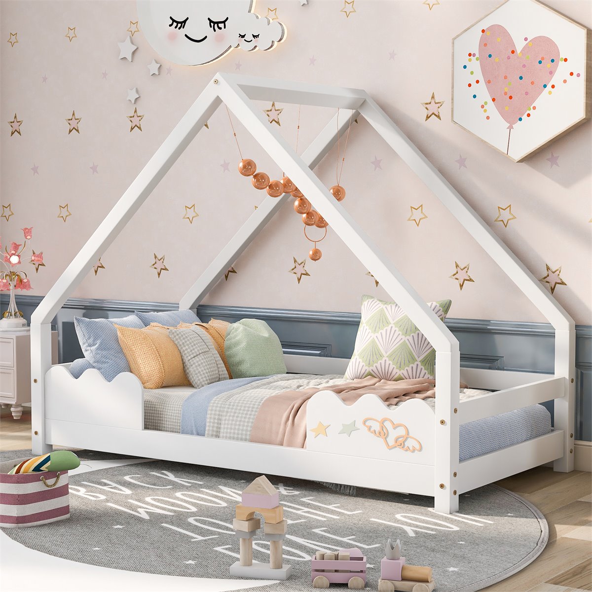 Valla ondulada: las vallas en ambos lados protegen a su hijo de caídas y tienen una forma ondulada que se ve linda y simple y está llena de diversión infantil.