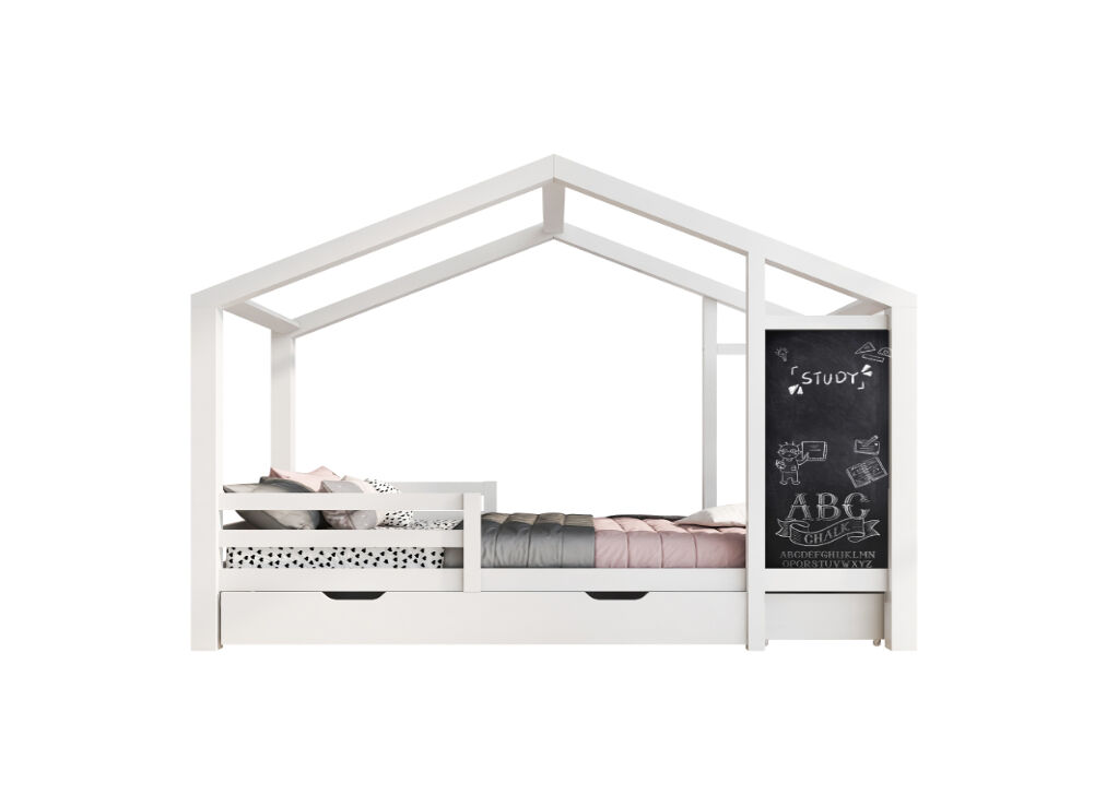 Combinando practicidad y creatividad: la cama tiene una forma general de techo que amplía el espacio de movimiento. El frente está equipado con un panel de 84*39 cm, lo que la convierte en una cama rentable que combina entretenimiento y función para dormir. La construcción única le permite agregar. un sentido imaginativo de creatividad al dormitorio de su hijo.
