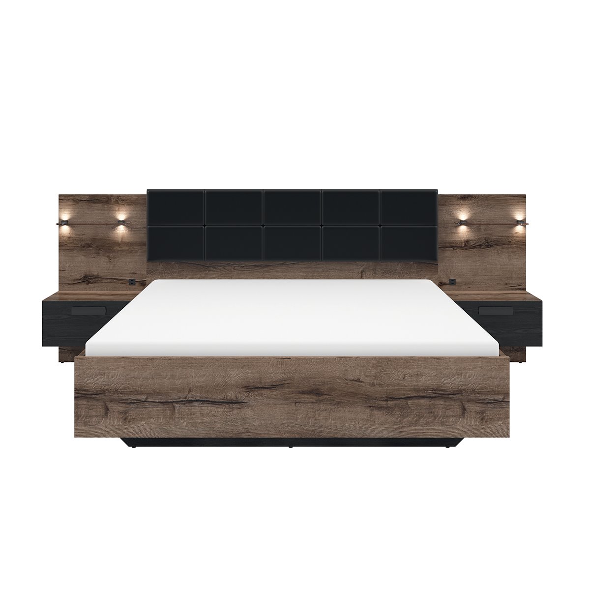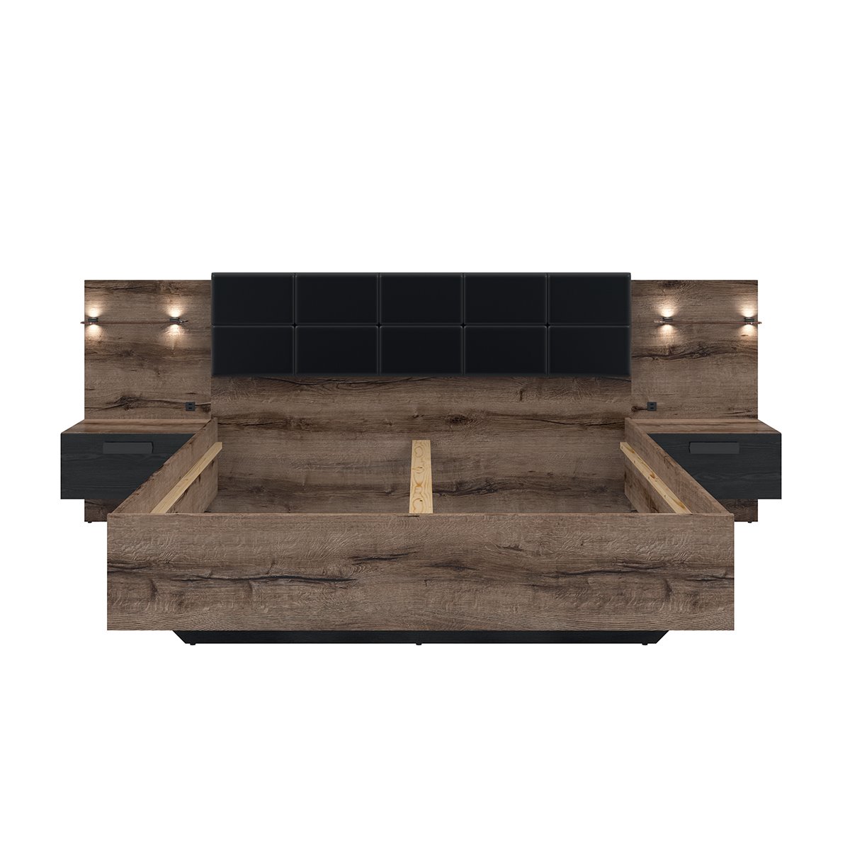 Cama 160x200 con mesita de noche LED y toma USB Romane Madera