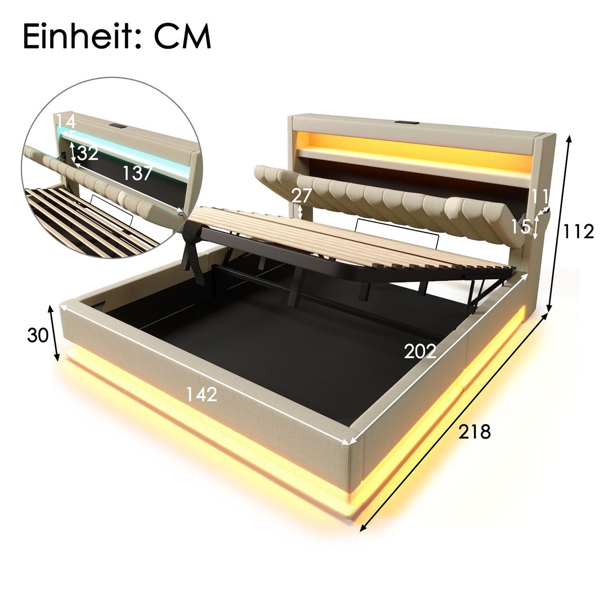 【Iluminación LED innovadora】 Las tiras de luz LED se encuentran en la cabecera y los pies de la cama. Se controlan mediante una aplicación móvil o un control remoto y cuentan con temporizador y múltiples modos de iluminación dinámica. Las luces se mueven al ritmo de la música y se pueden seleccionar más de 60,000 colores de luz a través de la aplicación.