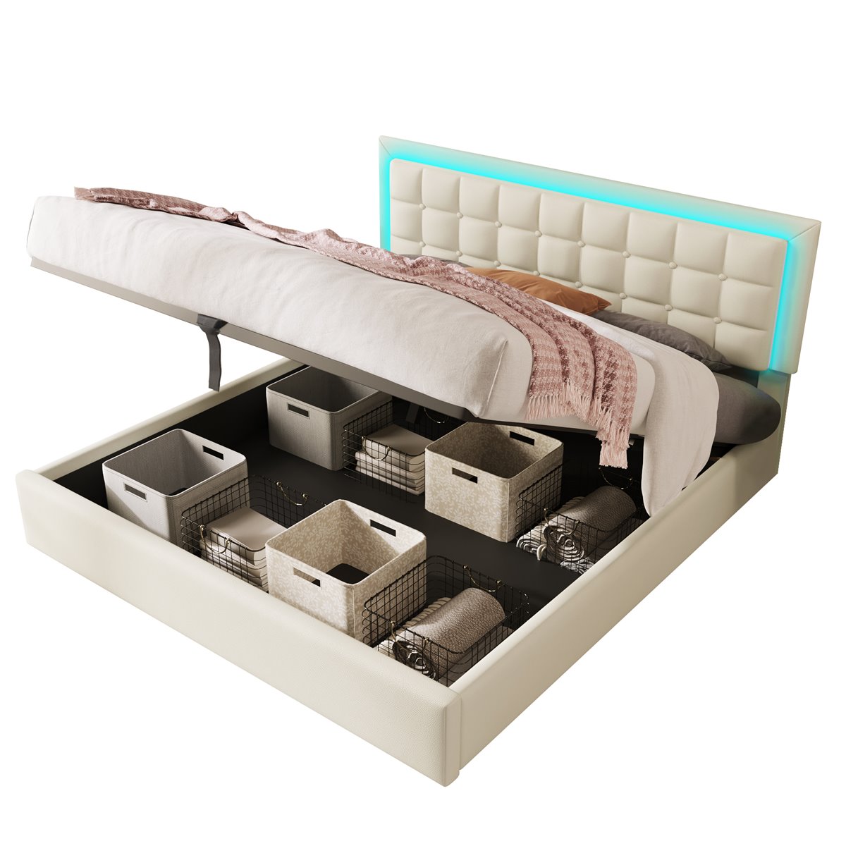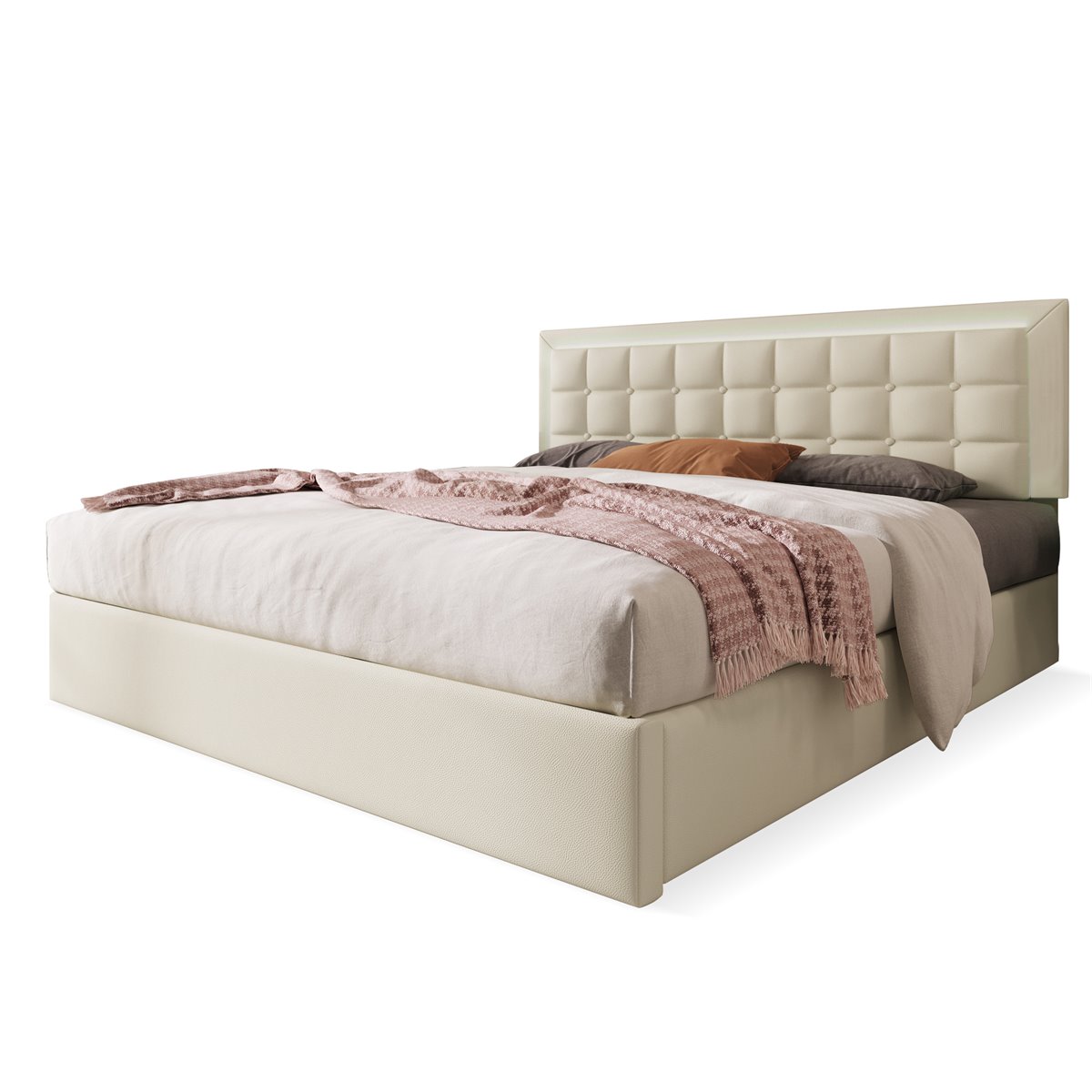 Iluminación LED - Diseño elegante: mientras que la cubierta de la cabecera está bellamente dividida por un elegante acolchado, el pie de cama y la cabecera están cubiertos con cuero artificial de lujo de alta calidad. La iluminación LED añade un estilo moderno a tu dormitorio, con el control remoto puedes cambiar los diferentes colores y el brillo para acostarte cómodamente.