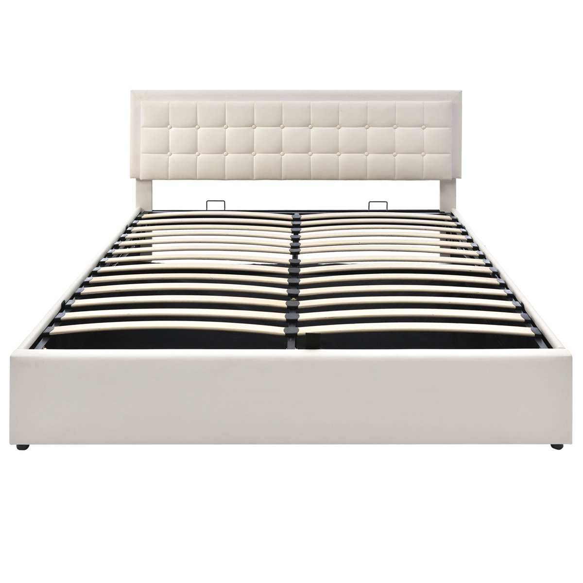 Varilla hidráulica - Gran espacio de almacenamiento: El cajón de la cama ofrece mucho espacio para guardar ropa, ropa de cama y otras pertenencias, protegidas del polvo. La tela Oxford ayuda a prevenir el moho y los hongos. Sin embargo, le recomendamos que ventile la caja de la cama periódicamente. **Coloque el colchón sobre la cama antes de probar la palanca hidráulica.
