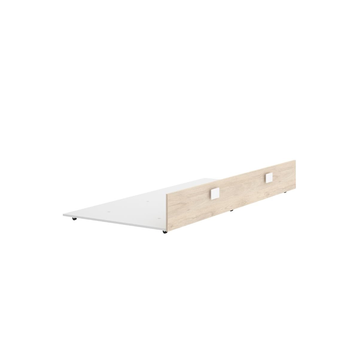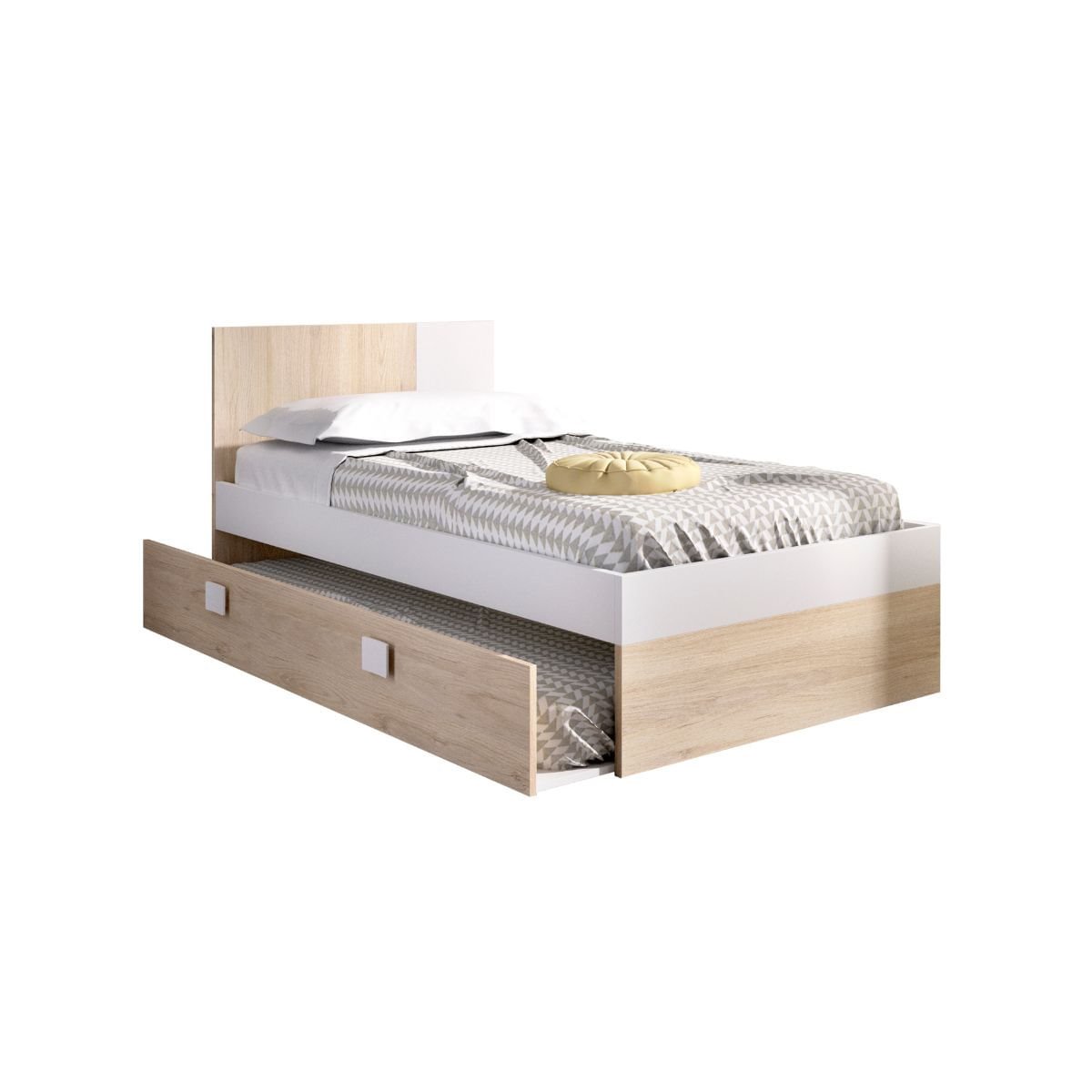 La cama juvenil individual modelo Dina es la opción perfecta para darle a la habitación de tus hijos un toque de estilo y funcionalidad. Su diseño bicolor en natural y blanco agrega un encanto especial, combinable con el resto de los muebles de la colección Dina, creando una estética armoniosa y juvenil. Una de las características más destacadas de esta cama es su arrastre, que maximiza el espacio de almacenamiento. Este espacio adicional es ideal para colocar un colchón extra, convirtiendo la cama en una cómoda opción para visitas inesperadas, o para almacenar cajas de ropa y otros objetos, manteniendo así la habitación ordenada y organizada. Además de su diseño y funcionalidad, la cama Dina está pensada para ofrecer comodidad y durabilidad. Los tacos ABS quitarruidos y antirrayaduras aseguran que el mobiliario se mantenga en óptimas condiciones por más tiempo, mientras que las ruedas unidireccionales de Nylon con soporte metálico en el arrastre facilitan su movilidad sin dañar el suelo.