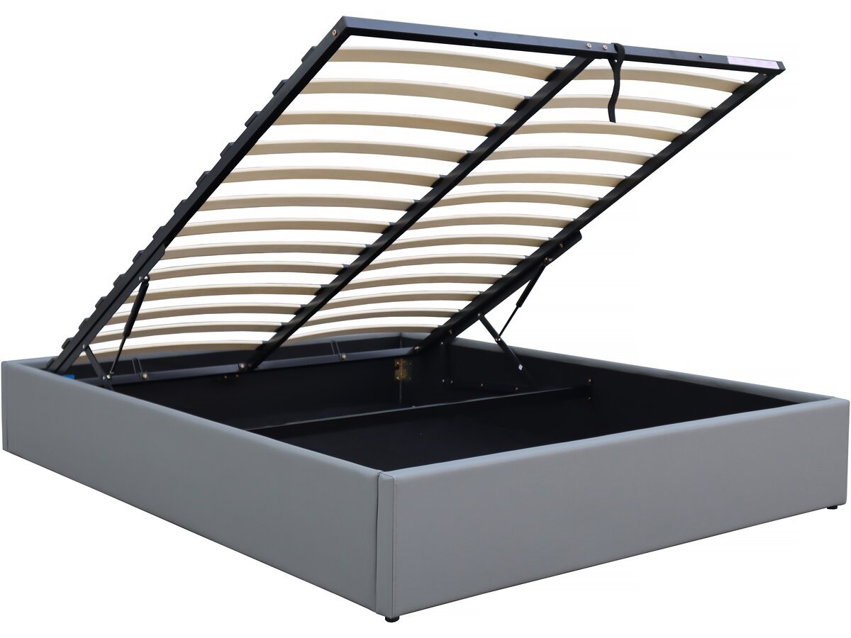 Desripción : Cama doble PVC con box Ava - Somier de láminas - Box de almacenaje - 160 x 200 cm - Gris.