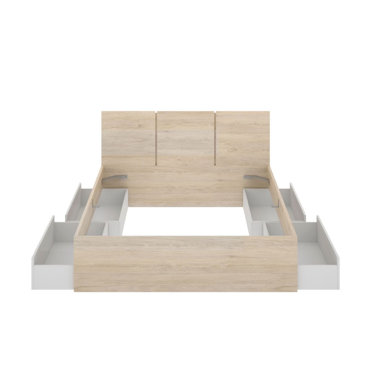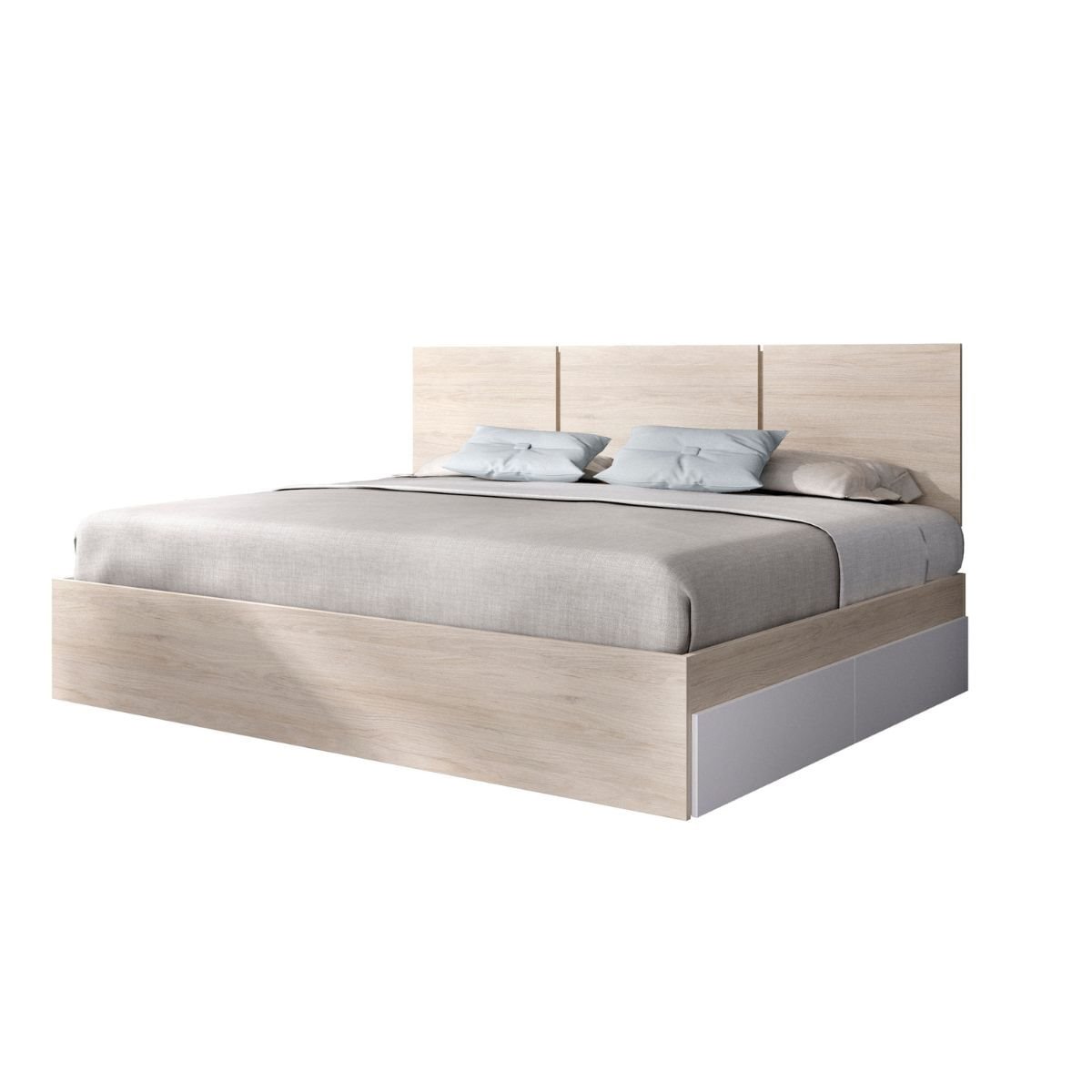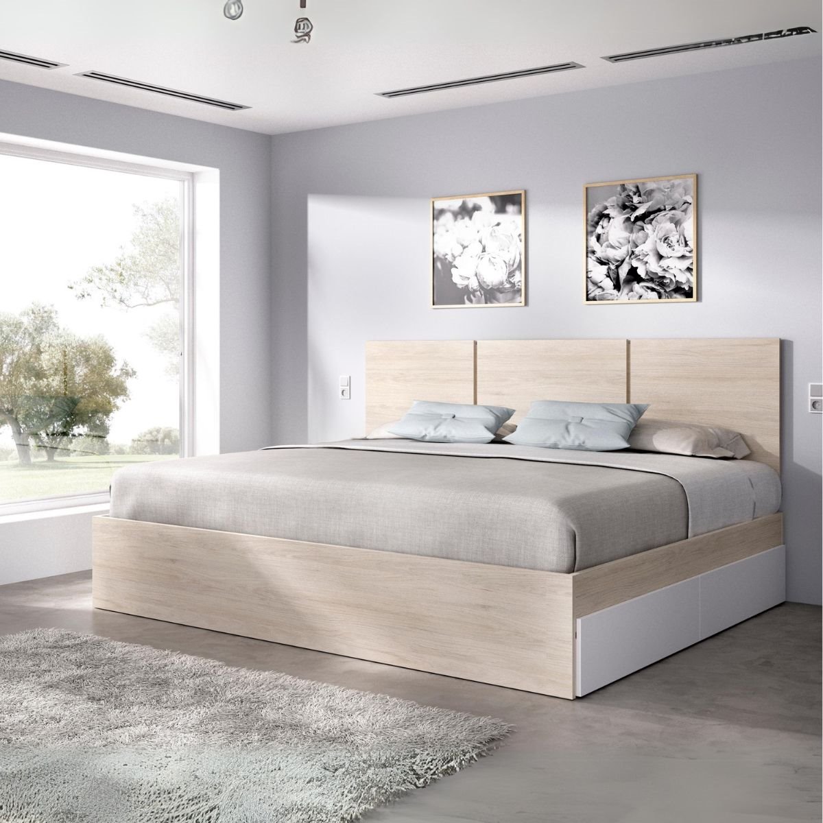 Dale un nuevo aire a tu habitación con esta nueva cama modelo Havana ideal para habitaciones de matrimonio y con unos colores neutros y combinables blanco y natural le dará a tu dormitorio un toque minimalista y sencillo. La cama está formada por un amplio cabecero dividido en tres franjas en un precioso color madera natural combinado con el blanco de los cajones situados en la parte inferior. Sus 4 amplios cajones inferiores son ideales para almacenar y organizar todas tus prendas y objetos que necesites optimizando el espacio al máximo.