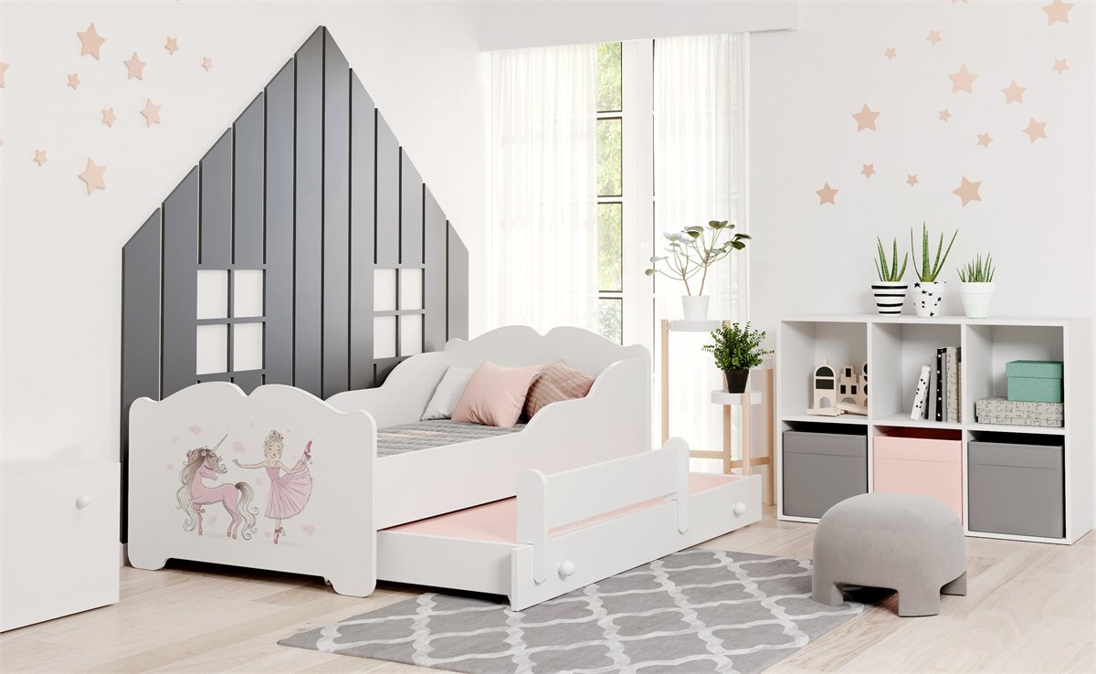 La cama individual para niños ANNA es el complemento ideal para el dormitorio de su hijo y ofrece estilo y funcionalidad. Esta cama, que mide 63 x 85 x 164 cm con un área para dormir de 80 x 160 cm, está construida con madera de ingeniería y presenta un elegante acabado en melamina blanca, MDF y ABS. Su moderno diseño rectangular encaja sin esfuerzo en cualquier diseño de habitación. Aunque no incluye cajones, las líneas limpias y la construcción duradera de la cama ANNA garantizan un espacio para dormir cómodo y elegante. Esta cama es perfecta para quienes buscan crear un ambiente contemporáneo y organizado en la habitación de su hijo.