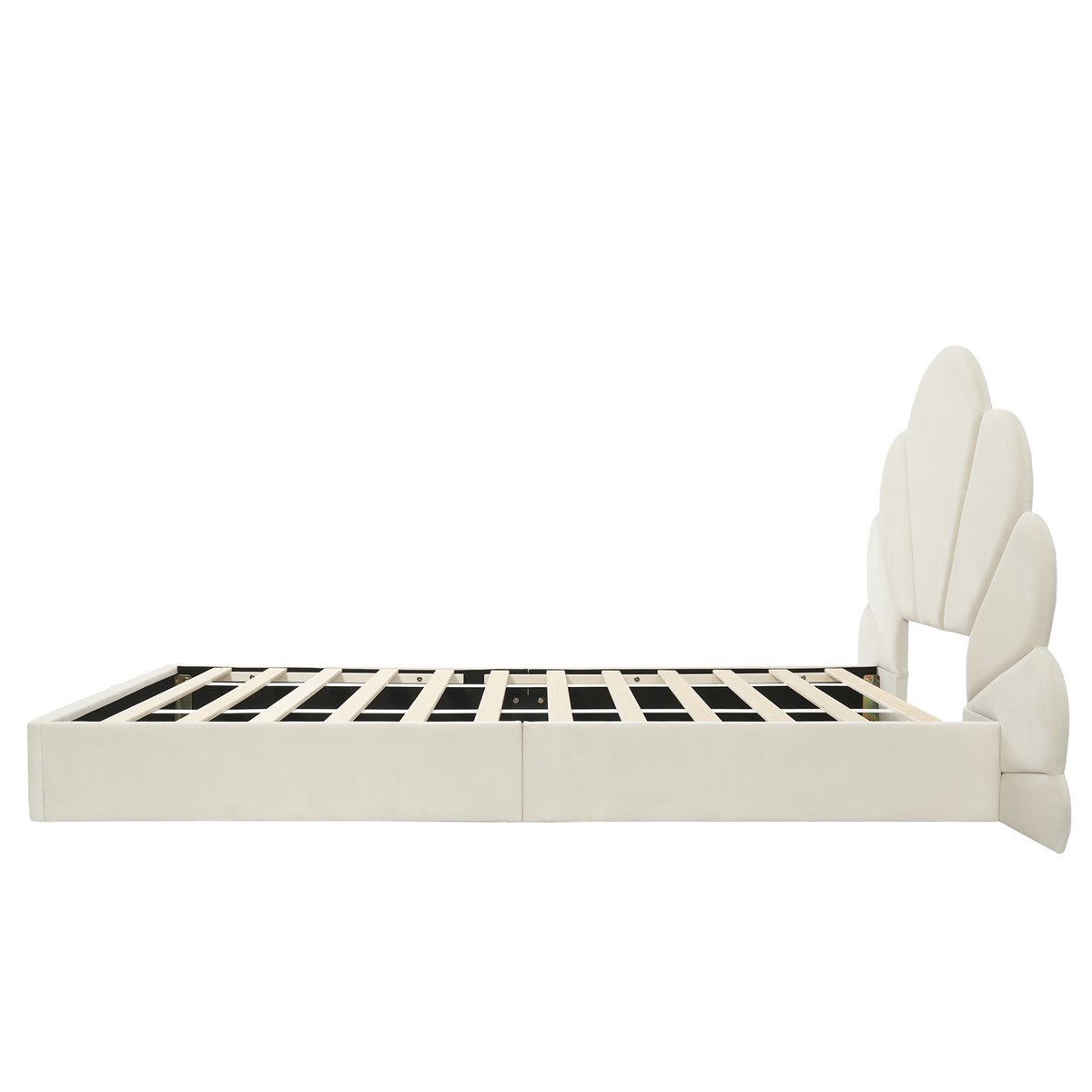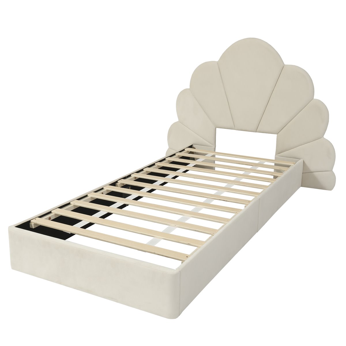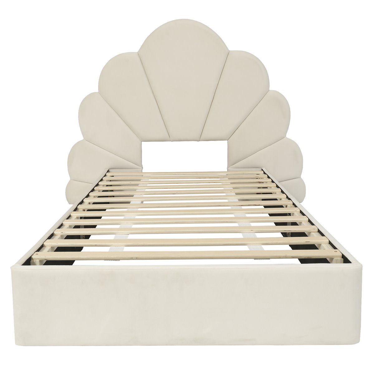Elegante cabecero de flores: El cabecero curvado con forma de pétalos de flores le da a la cama un toque romántico y alegre, ideal para habitaciones infantiles o juveniles con estilo.