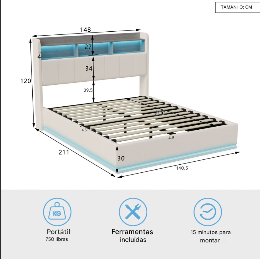 - Colchón aplicable (colchón no incluido): 140x200 CM