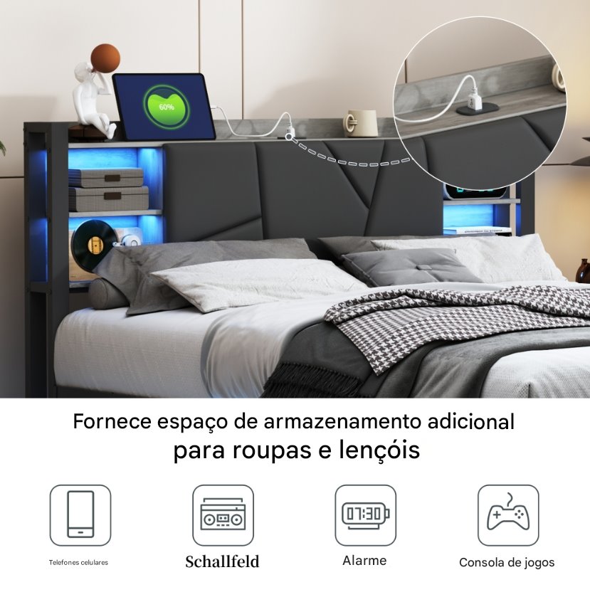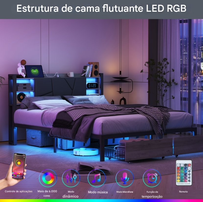 - Cama tapizada LED: estilo y comodidad combinados: ¡Regálese una experiencia de sueño única con nuestra elegante cama tapizada LED! Este marco de cama combina la estética moderna con la funcionalidad para transformar tu dormitorio en un oasis de bienestar.