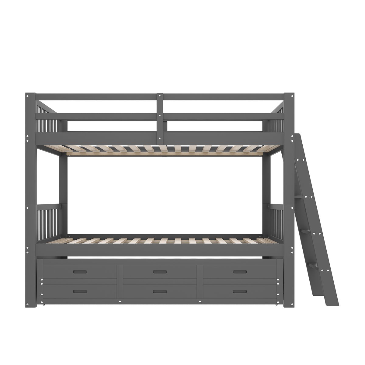 Litera 90x200cm - Cama infantil, cama tipo casa, estructura de pino y MDF con escalera y cama extraíble con 3 cajones - Gris
