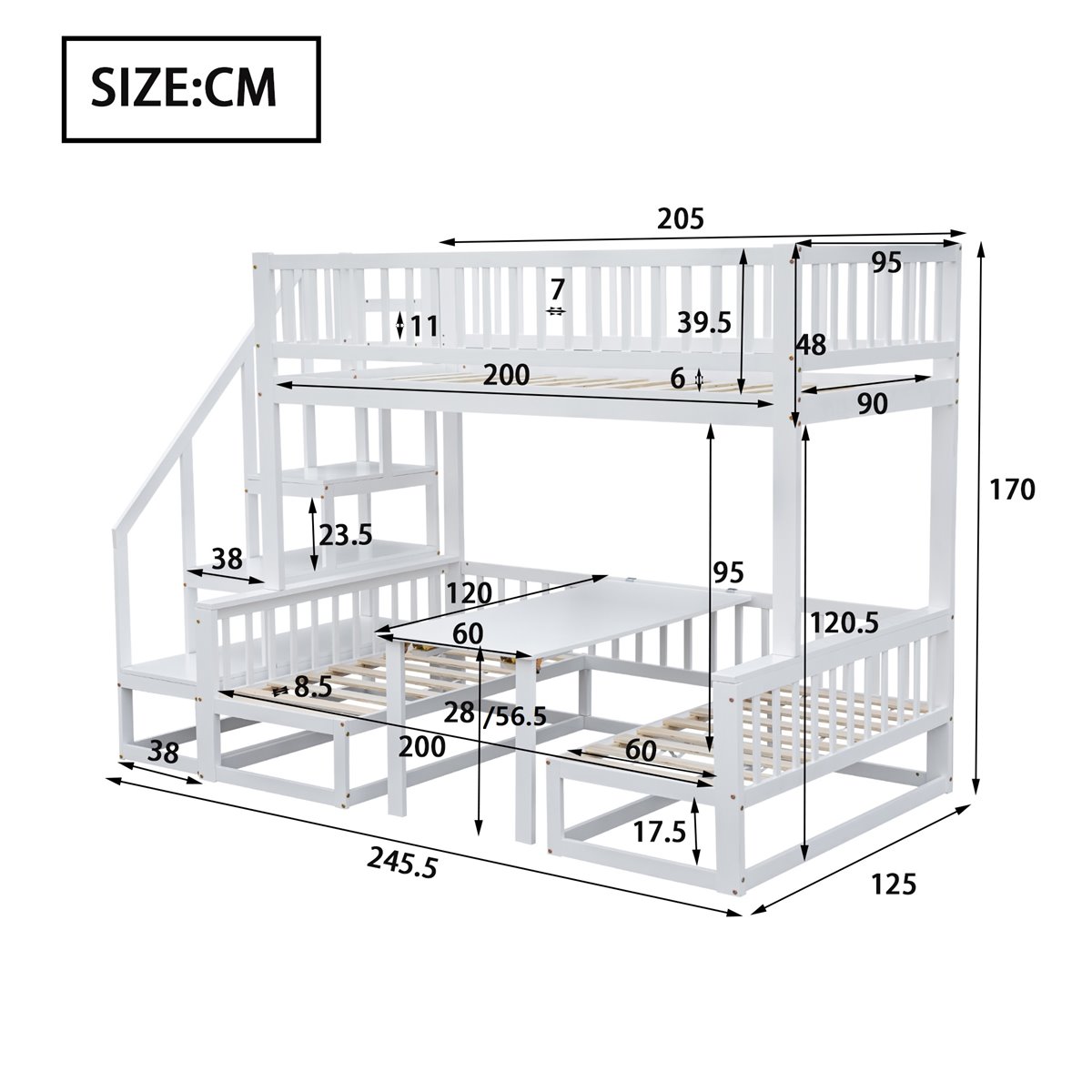 - Tamaño de la cama inferior: 120x200 cm
