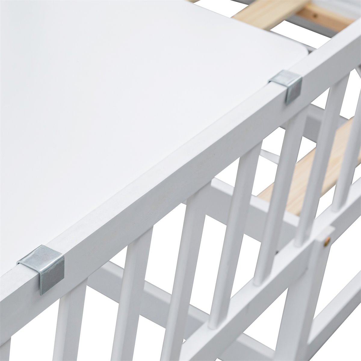 - Este producto no incluye colchones ni almohadas. Solo incluye el marco de la cama inferior.