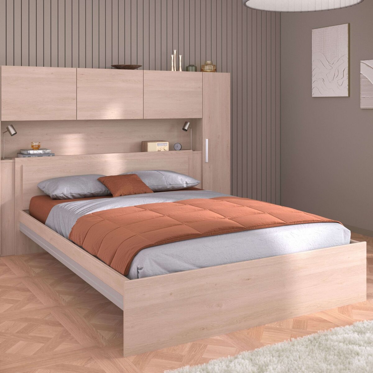 La cama Ekko con colchón de 135/140x190 cm destaca por su impecable diseño, ideal para transformar tu dormitorio en un espacio moderno y con personalidad. Su acabado en Roble Brooklyn ofrece una sensación de calidez natural que se adapta a cualquier estilo decorativo. Este mueble, elaborado en melamina bajo el modelo Baltic, se presenta como una opción estética con un toque contemporáneo. Además, su diseño convierte a la cama Ekko en el centro de atención de la habitación. Con su estilo y detalle, la cama Ekko no solo ofrece un lugar de descanso, sino también una pieza que añade carácter y estilo a tu hogar. Está fabricada en melamina de alta densidad bajo el modelo Baltic. Es adecuada para un descanso placentero. Ideal para quienes buscan una excelente relación calidad-precio, la cama Ekko transformará tu espacio y brindará un confort excepcional. Opta por un diseño moderno y acogedor para tu hogar. Medidas: Ancho 150.2 cm Alto 70.9 cm Profundidad 193 cm Nota: no se incluye colchón, somier, ni el resto de muebles u objetos decorativos de las imágenes. Se trata de mobiliario con kit de montaje, que incluye manual de instrucciones y tornillería.