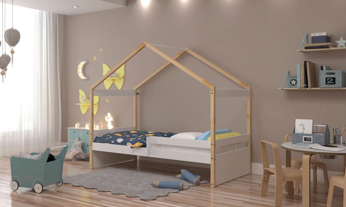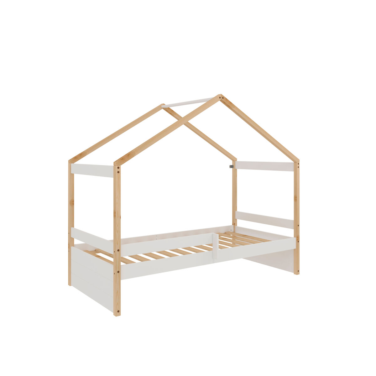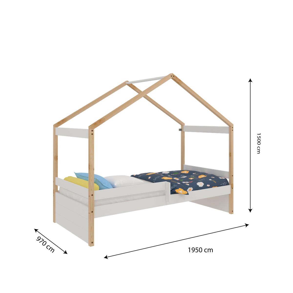 El diseño en estilo casita, pintada en un elegante color blanco con detalles en madera natural, aporta un toque acogedor y moderno que complementa cualquier estilo de decoración infantil. Perfecta para optimizar el espacio, la cama nido cuenta con un práctico cajón inferior que se puede utilizar como cama adicional o almacenamiento extra, ideal para mantener ordenada la habitación.