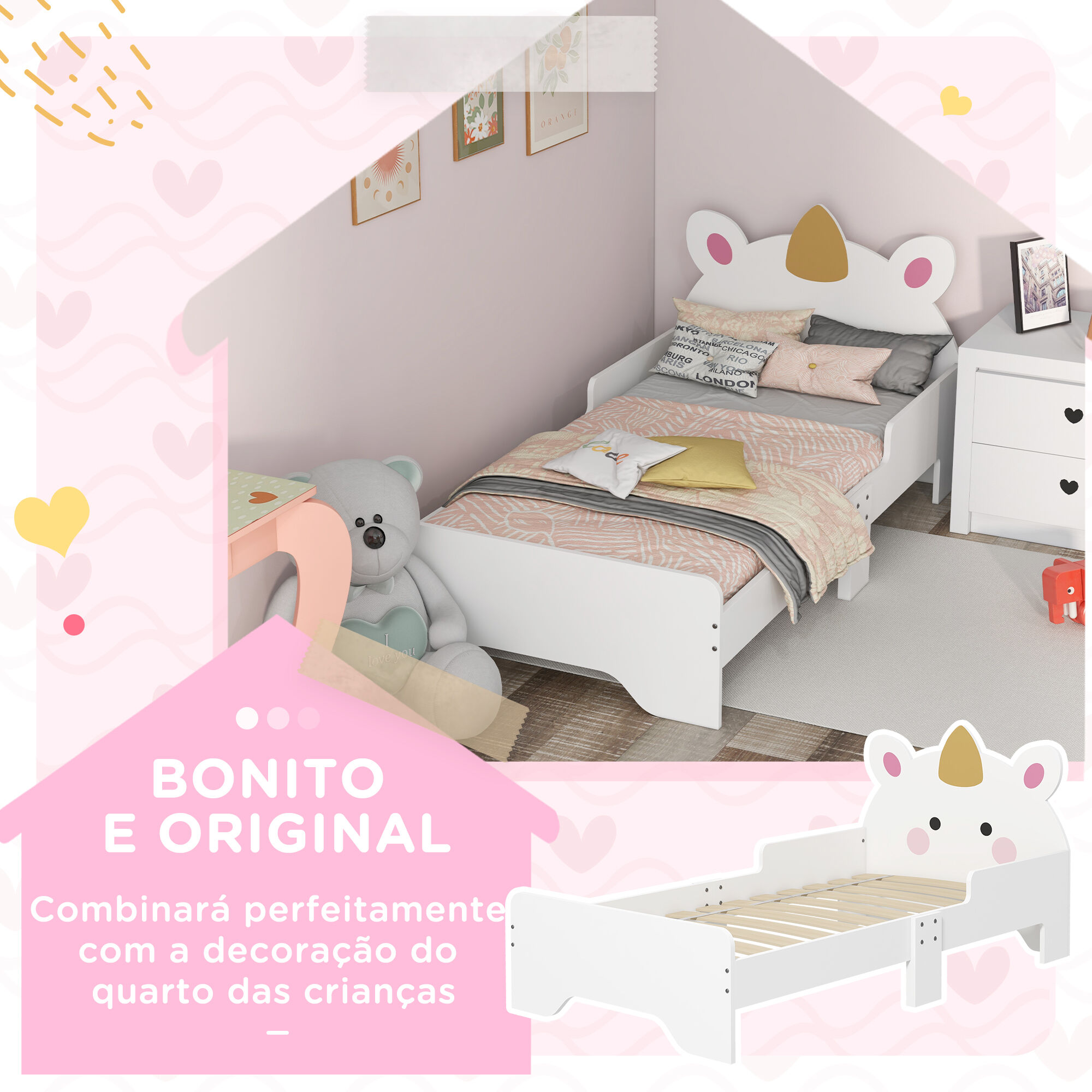 Transforma la habitación de tu hijo con esta cama infantil de ZONEKIZ, con un bonito diseño de unicornio. La seguridad es nuestra máxima prioridad, por eso cuenta con una altura baja para un fácil acceso y barandillas laterales para prevenir caídas. Su tamaño compacto facilita su colocación en cualquier espacio de tu hogar. Esta es la cama ideal para los niños, asegurando una transición suave y agradable hacia el sueño independiente.