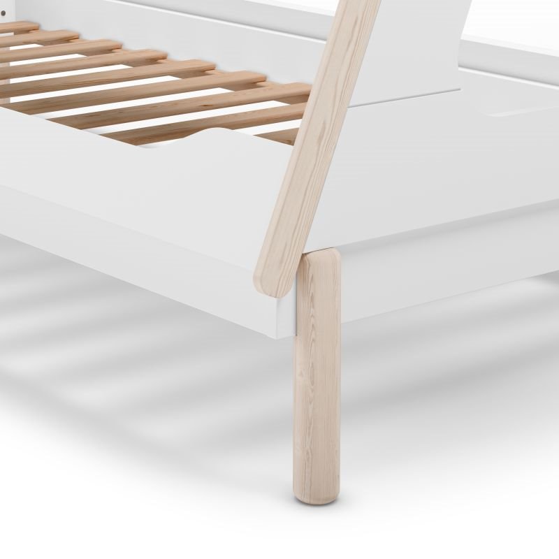 Fabricada con materiales robustos, esta cama cuenta con una base de lamas que garantiza una correcta ventilación del colchón, prolongando su vida útil y aportando mayor confort. Los detalles redondeados y el acabado liso en cada uno de sus elementos aseguran un entorno seguro para los más pequeños. Además, las patas elevadas proporcionan estabilidad y un diseño ligero que facilita la limpieza del suelo.