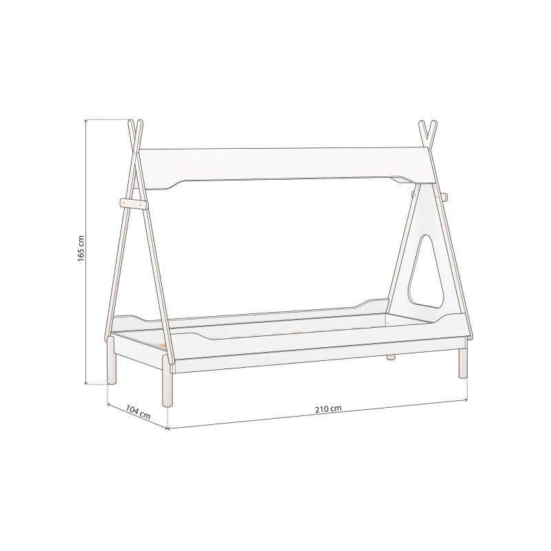 Su estructura de inspiración tipi transforma la habitación en un espacio de aventuras y sueños, combinando funcionalidad y estética de forma excepcional. Su silueta con forma de tienda de campaña crea una atmósfera acogedora y divertida que invita a jugar, leer o relajarse.