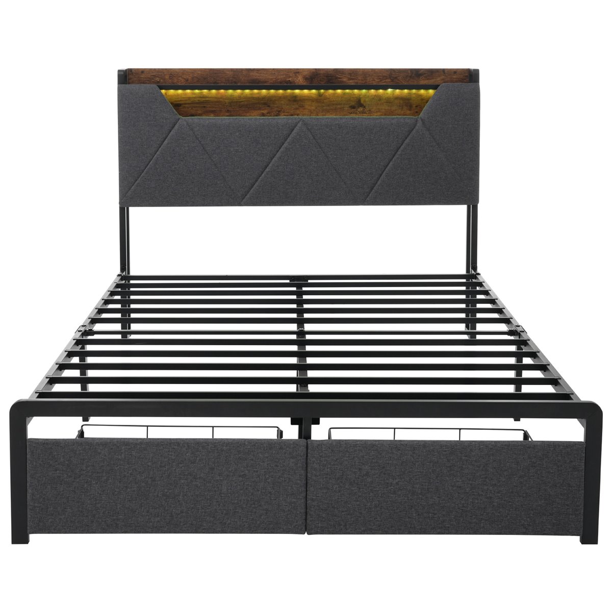 Este elegante y funcional conjunto de cama con almacenamiento es la solución perfecta para aquellos que buscan maximizar el espacio sin comprometer el estilo. El cabezal con almacenamiento ofrece una opción conveniente para organizar tus pertenencias, mientras que el diseño de cama con luces LED y la función de carga USB añaden comodidad y modernidad. Ideal para habitaciones modernas, este conjunto incluye un colchón con sistema de resortes y espuma para mayor confort. Con una estructura robusta y funcional, es apto para una carga máxima de hasta 200 kg. La opción de ajuste del cabezal y las prácticas cajoneras debajo de la cama lo convierten en un artículo imprescindible para quienes valoran el orden y la comodidad.