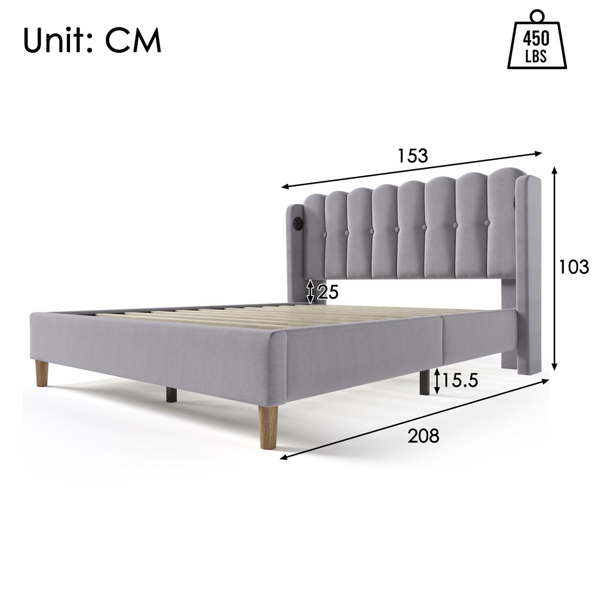 Este elegante polsterbett de 140x200 cm es ideal para tu dormitorio o habitación de invitados. Con un diseño moderno y funcional, este conjunto incluye una base con somier de lamas y una estructura tapizada en lino gris, que proporciona comodidad y un toque de sofisticación a tu espacio. El cabecero de paneles de lino gris está diseñado para crear un ambiente cálido y acogedor, perfecto para descansar. Además, cuenta con puertos de carga USB y Tipo C en ambos lados del cabecero, permitiéndote cargar tus dispositivos electrónicos directamente desde la cama, sin necesidad de levantarte.