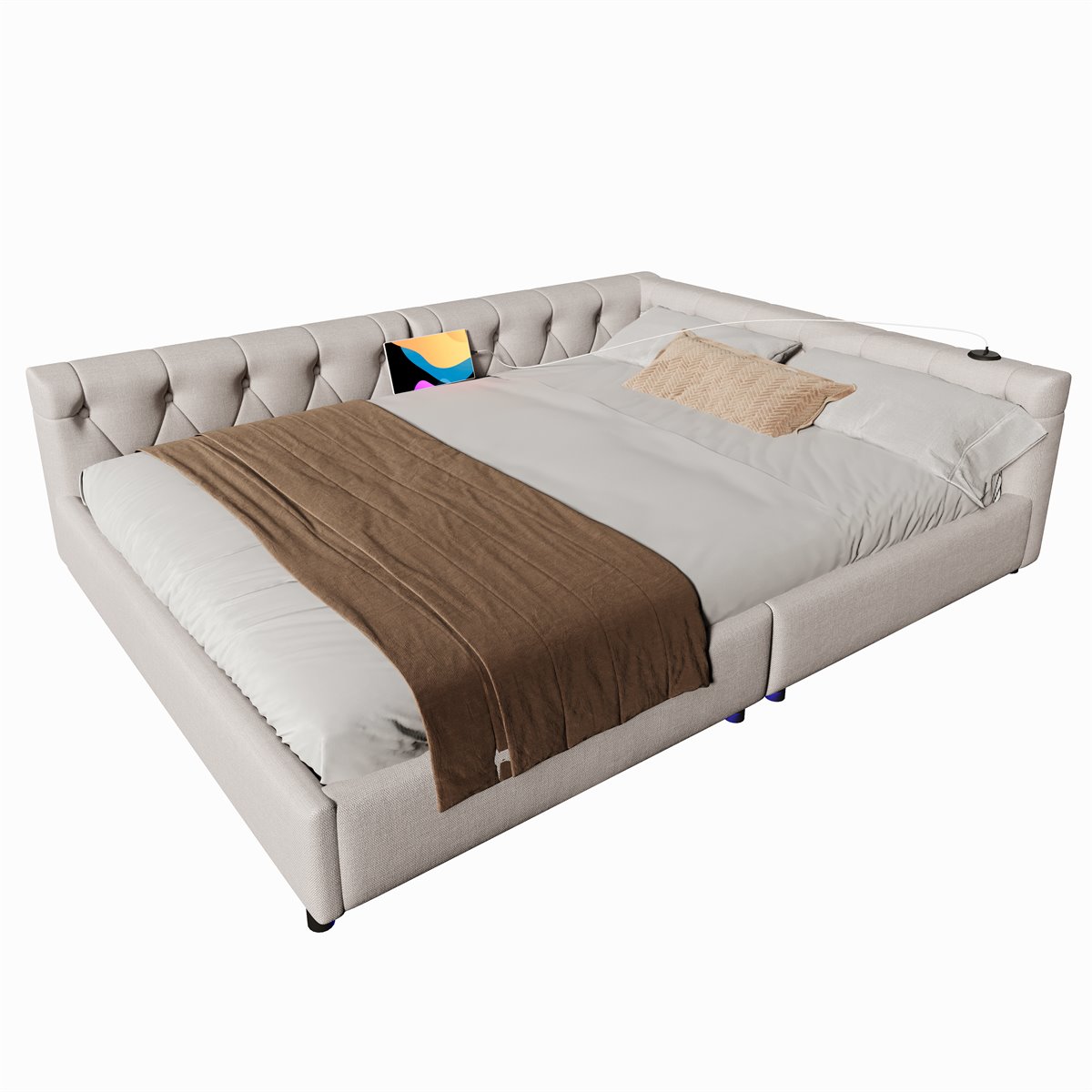 - Sofá cama tipo daybed de 140 x 200 cm con estructura de lino natural y MDF, que ofrece un descanso transpirable, cómodo y saludable.