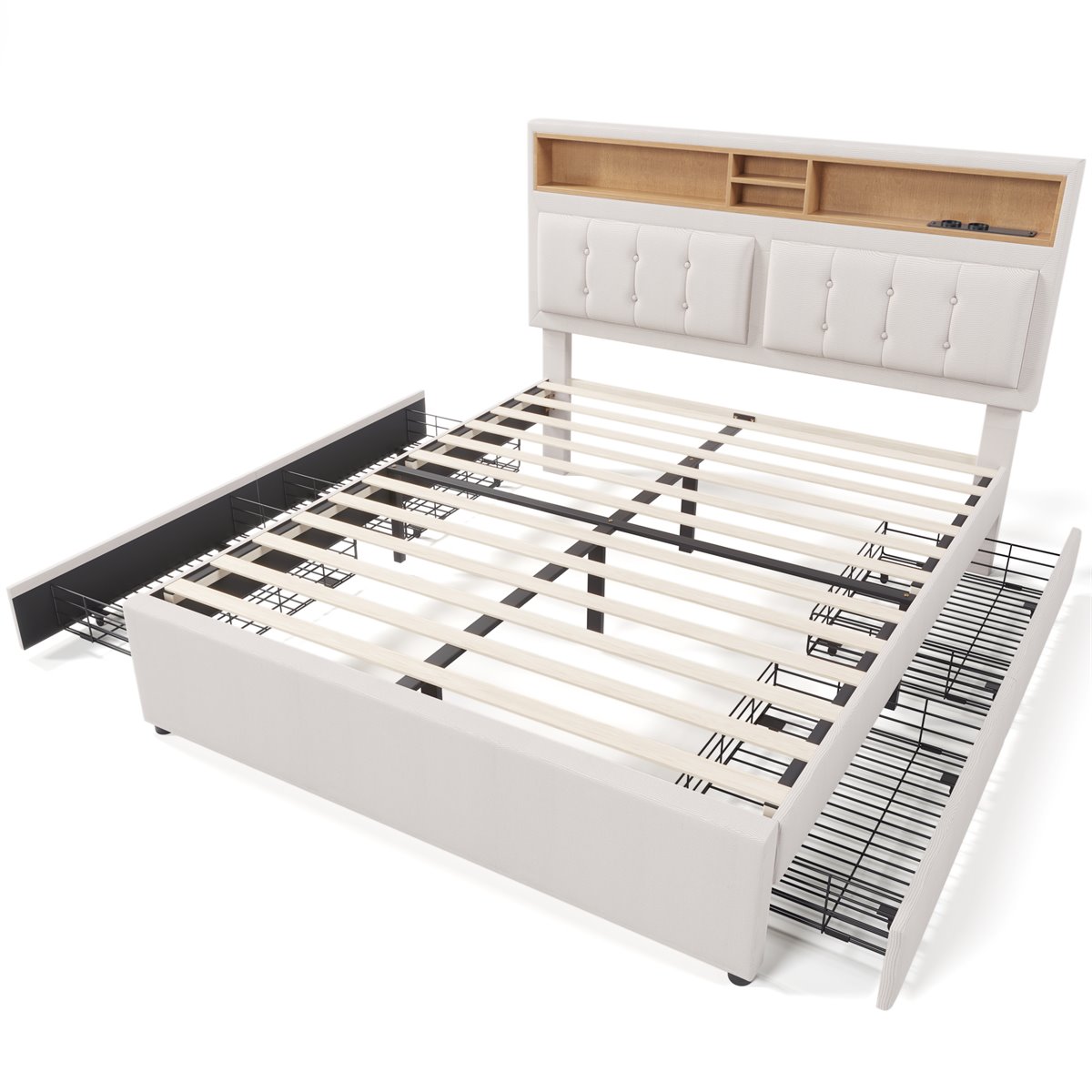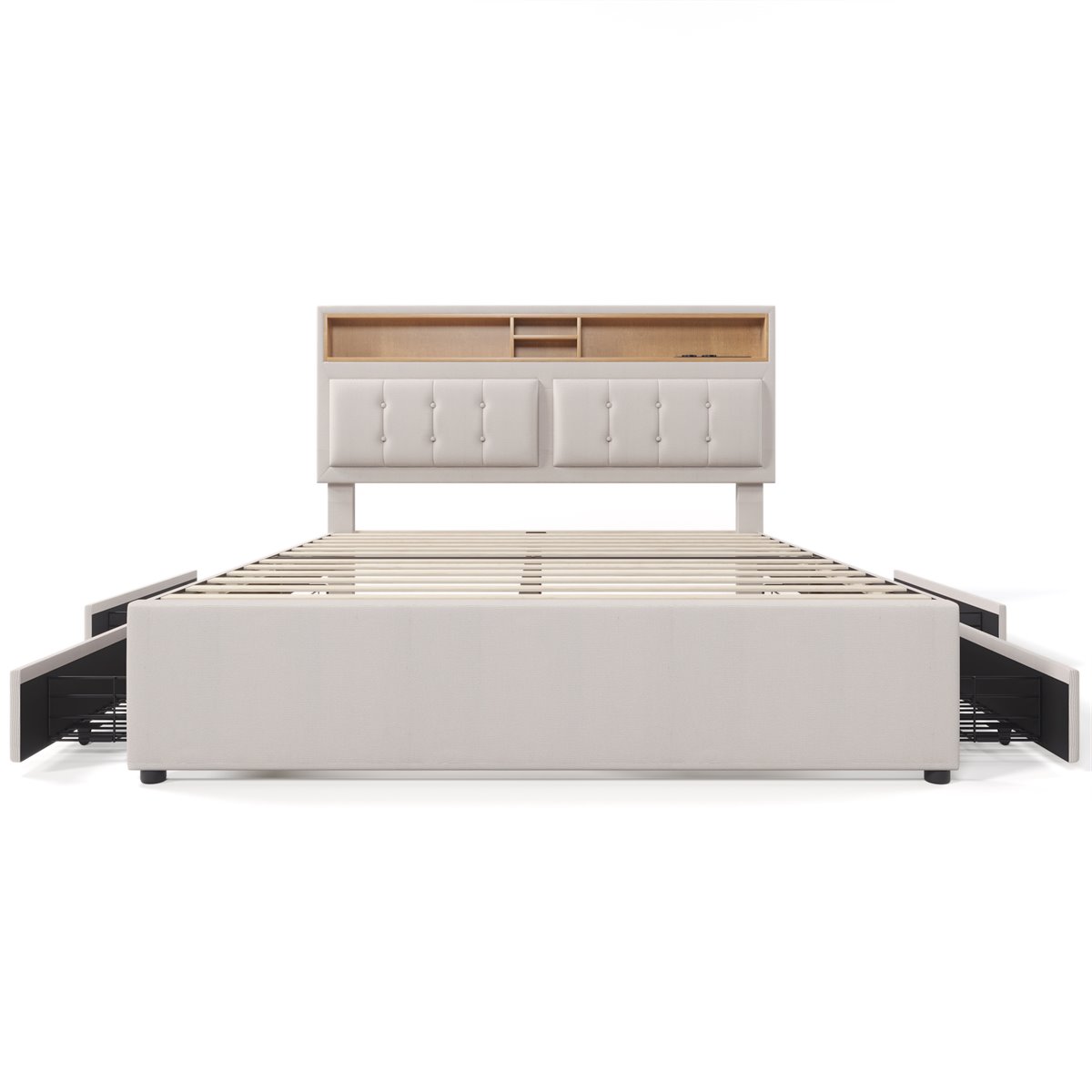 Con las telas de lino beige y las costuras del cabecero, esta cama para adultos de 160x200cm tiene un aspecto especial y elegante, encaja perfectamente en tu dormitorio o habitación de invitados.
