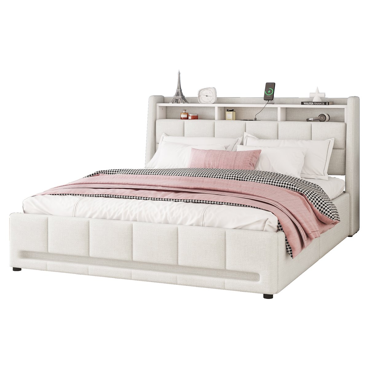 - Iluminación ambiental LED: Equipado con tiras de LED en el cabecero, esta cama crea una atmósfera acogedora y romántica. La luz puede ser controlada mediante una aplicación, permitiendo ajustar los colores según el estado de ánimo.