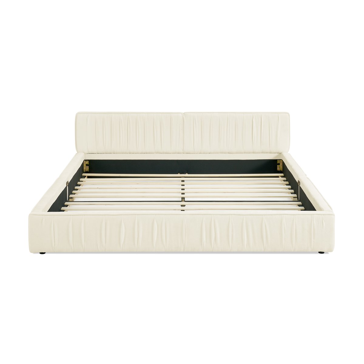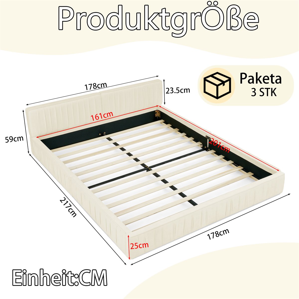 - Cama doble 160x200 cm con elegante tapizado de chenilla, fabricada en madera de eucalipto ecológica y un resistente marco de hierro.