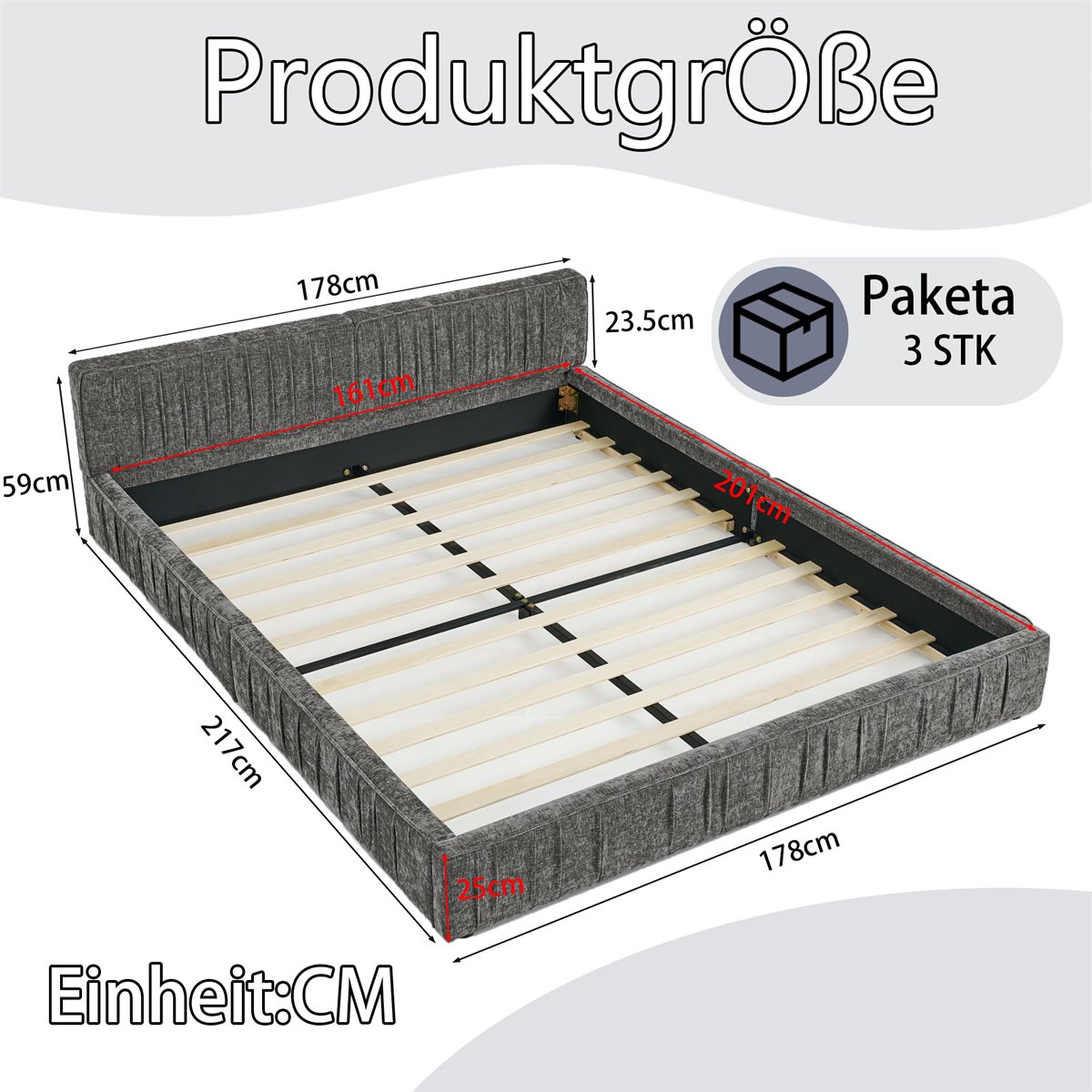 - Cama doble 160x200 cm con elegante tapizado de chenilla suave, ideal para dormitorios de tamaño medio a grande.