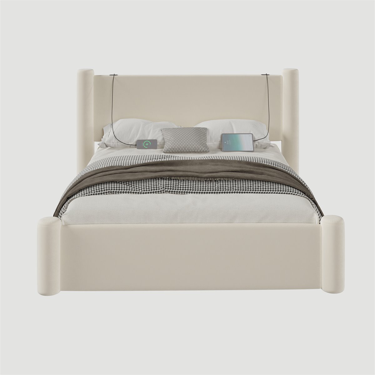 - Puertos USB integrados en el cabecero: El cabecero está equipado con puertos USB, para que puedas cargar tus dispositivos directamente desde la comodidad de tu cama, ideal para hogares modernos que combinan tecnología y confort.