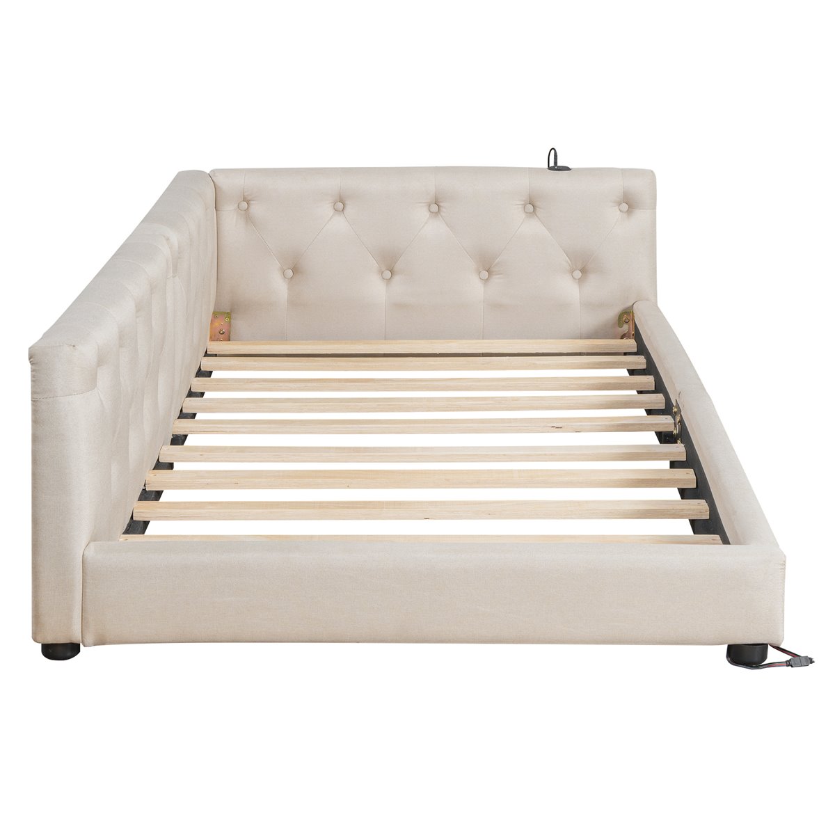 - Sofá cama tipo daybed de 90 x 200 cm con estructura de lino natural y MDF, que proporciona un descanso transpirable, cómodo y saludable.