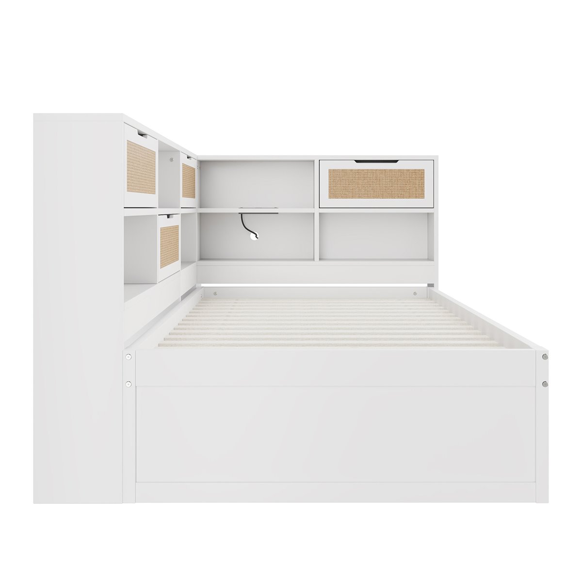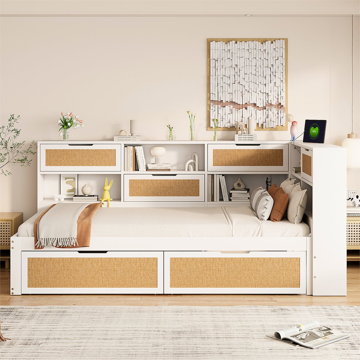 - Amplio espacio de almacenamiento con varios compartimentos y dos cajones grandes debajo de la cama para organizar ropa, juguetes, libros y otros objetos personales.