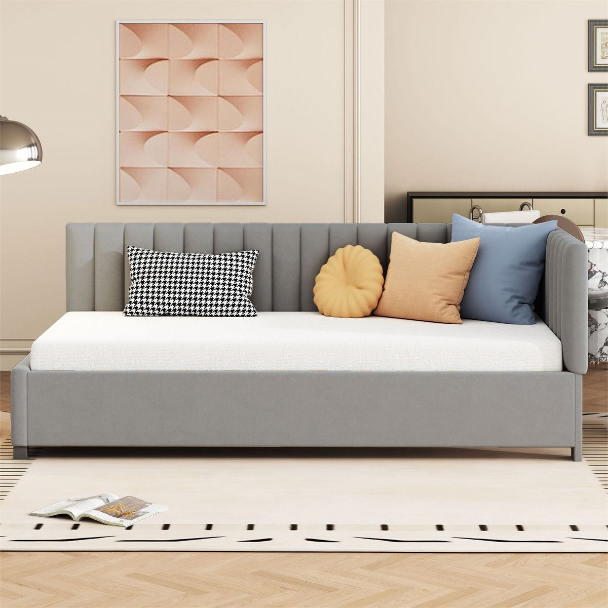 Este sofá cama multifuncional de diseño clásico es ideal para transformar tu espacio, ofreciendo una transición perfecta del sofá a una cama. Con un elegante y sencillo diseño, se adapta a cualquier estilo de decoración, añadiendo un toque de sofisticación a tu hogar. Su tapizado de terciopelo suave y su cabezal acolchado brindan un confort táctil excepcional, mientras que la estructura estable y los listones resistentes garantizan un soporte seguro y duradero. Perfecto para quienes buscan funcionalidad y estilo en un solo mueble.