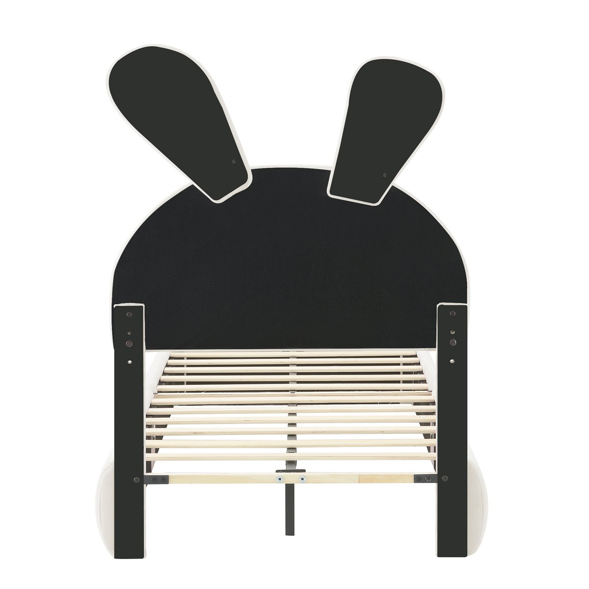 • Cama individual de diseño único con orejas de conejo, perfecta para habitaciones infantiles o espacios con un toque lúdico y acogedor.