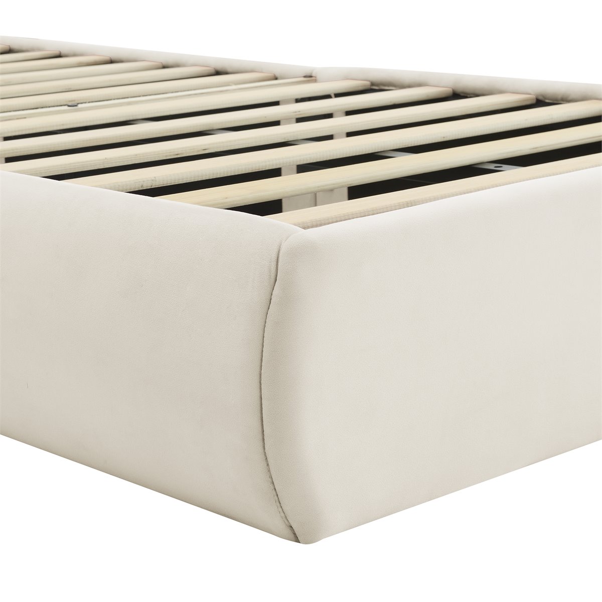 • Diseño único: La cama está decorada con orejas de conejo en suave terciopelo beige, aportando un toque lúdico y acogedor. Una de las orejas está equipada con una luz LED ajustable que emite una cálida luz amarilla, creando una atmósfera relajante.