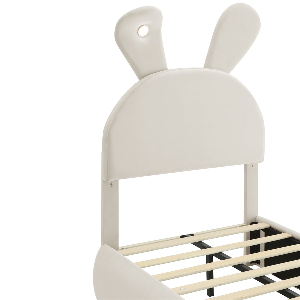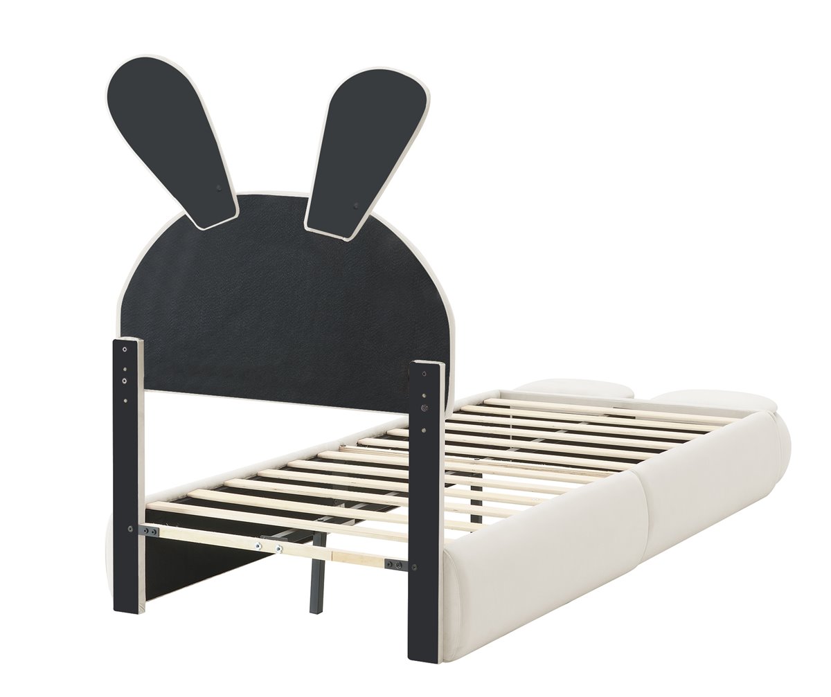 - Cama individual de diseño único con orejas de conejo, perfecta para habitaciones infantiles o espacios con un toque lúdico y acogedor.