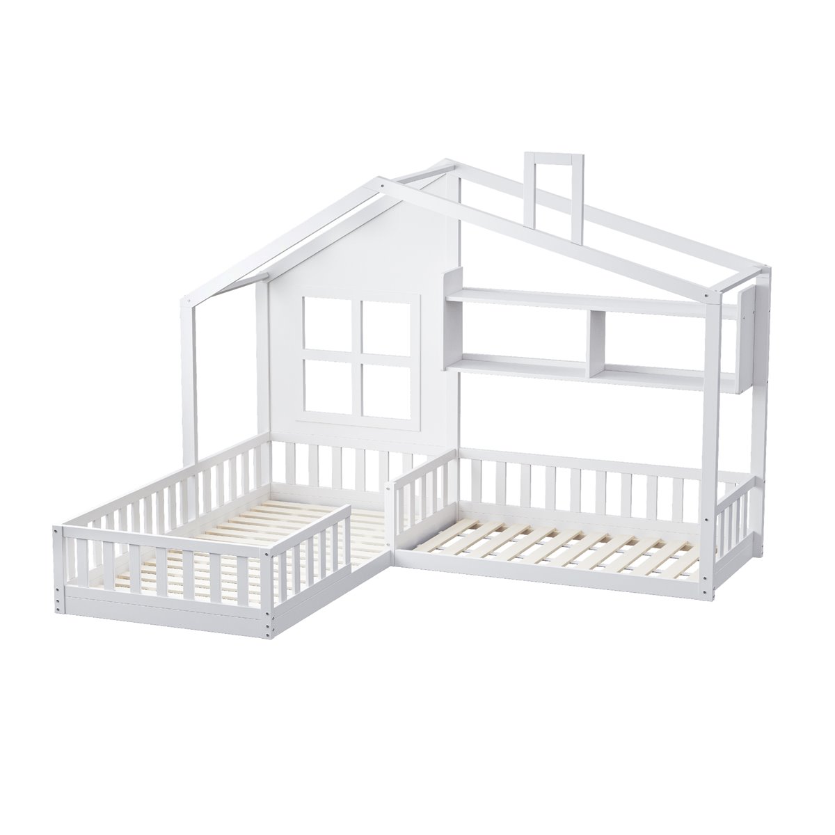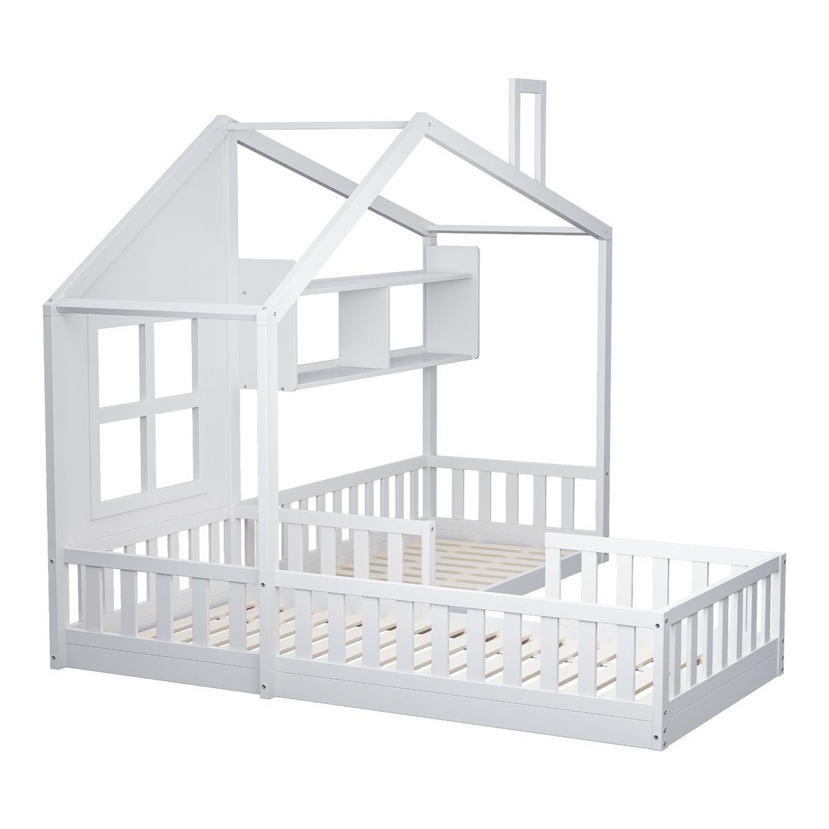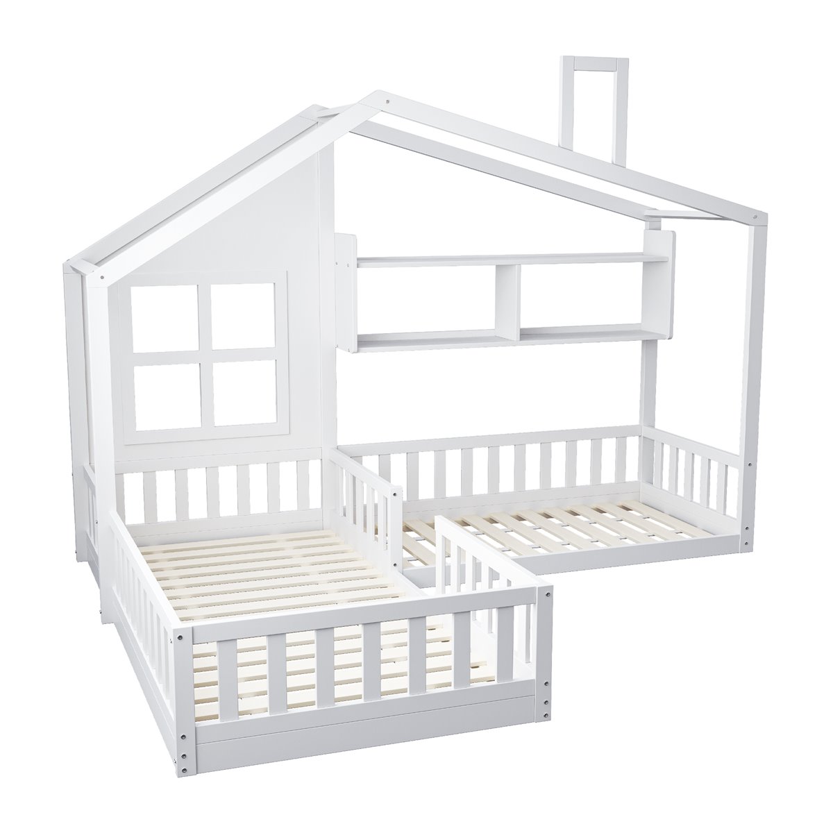 Con una adorable forma de casa con elementos de ventana y chimenea, esta cama doble para niños estimula la imaginación de tu hijo y agrega un toque de diseño y diversión a la habitación infantil.
