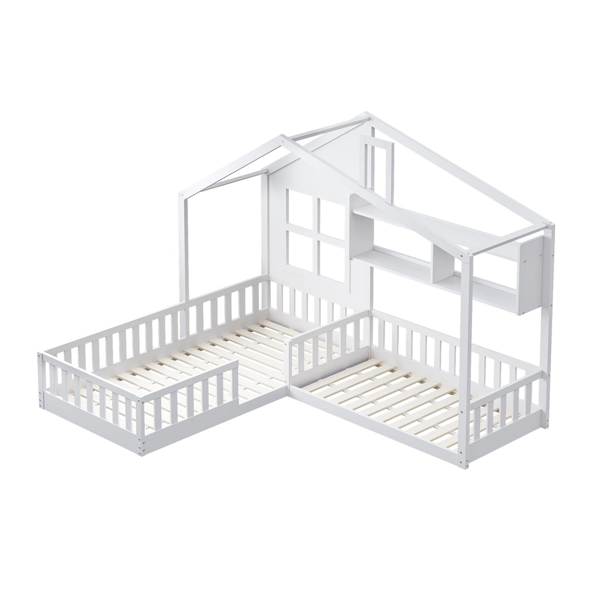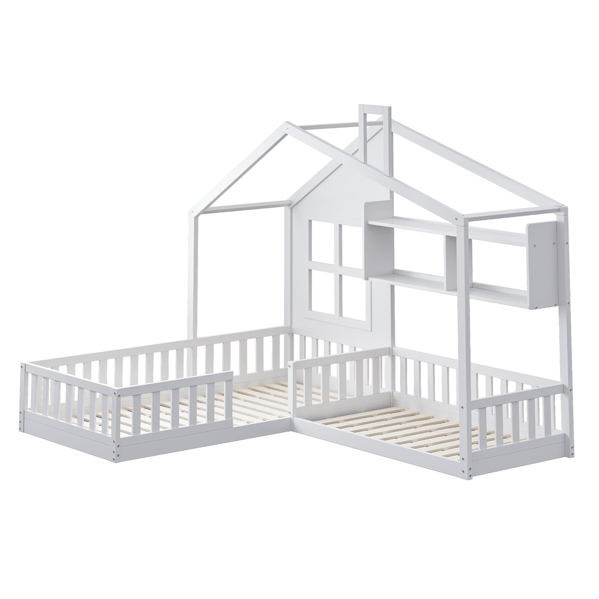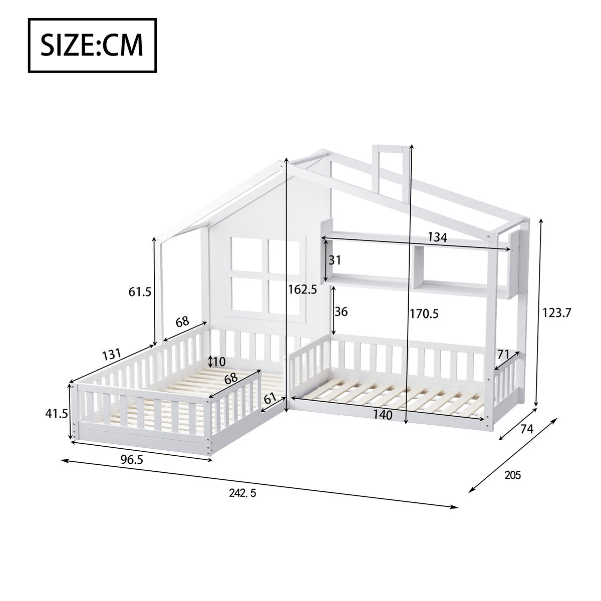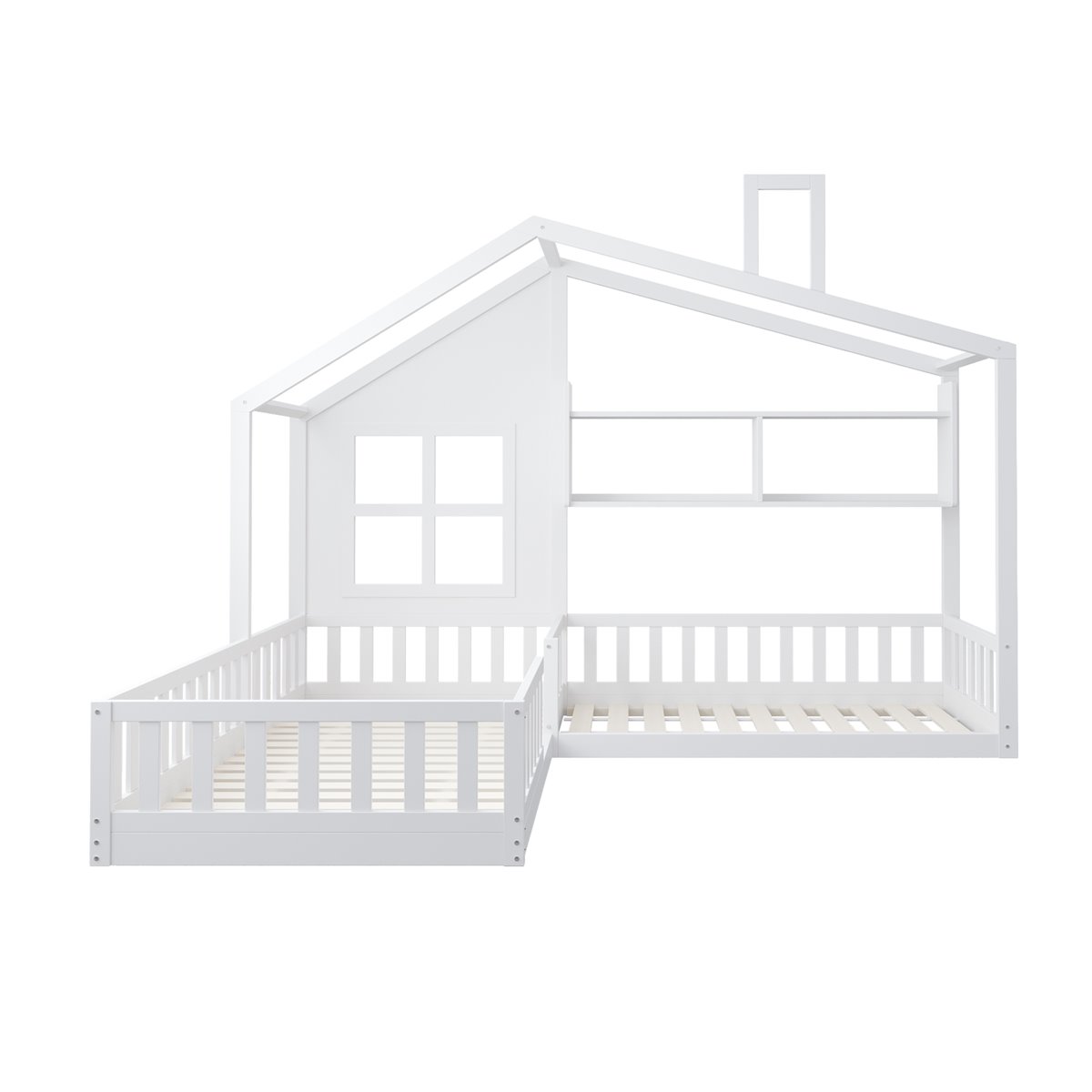 Con una adorable forma de casa con elementos de ventana y chimenea, esta cama doble para niños estimula la imaginación de tu hijo y agrega un toque de diseño y diversión a la habitación infantil.
