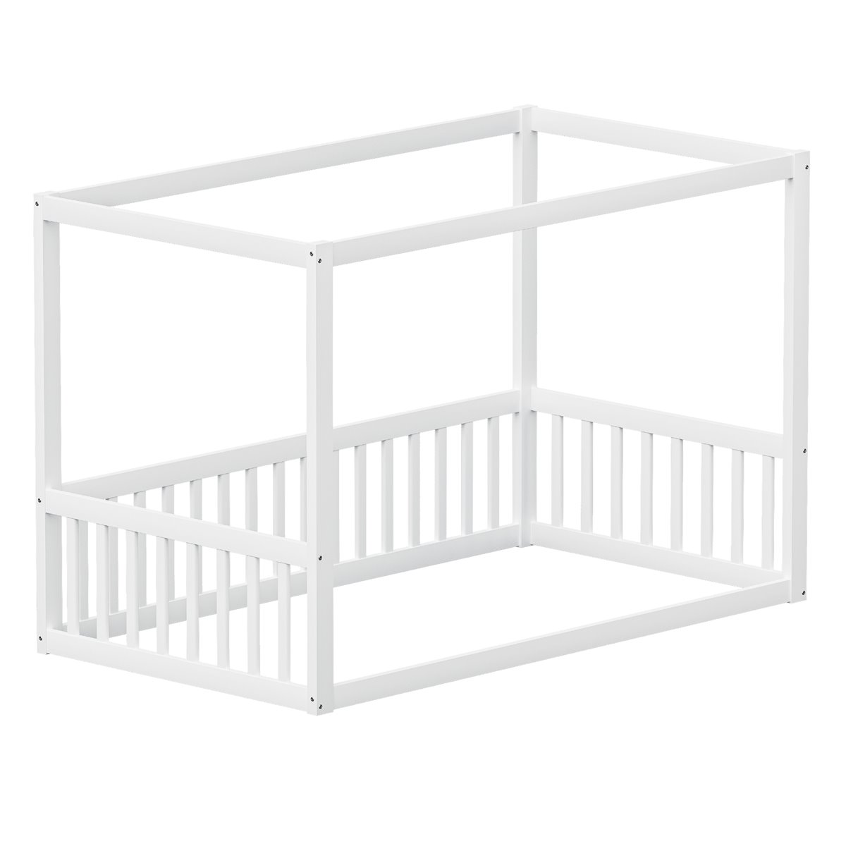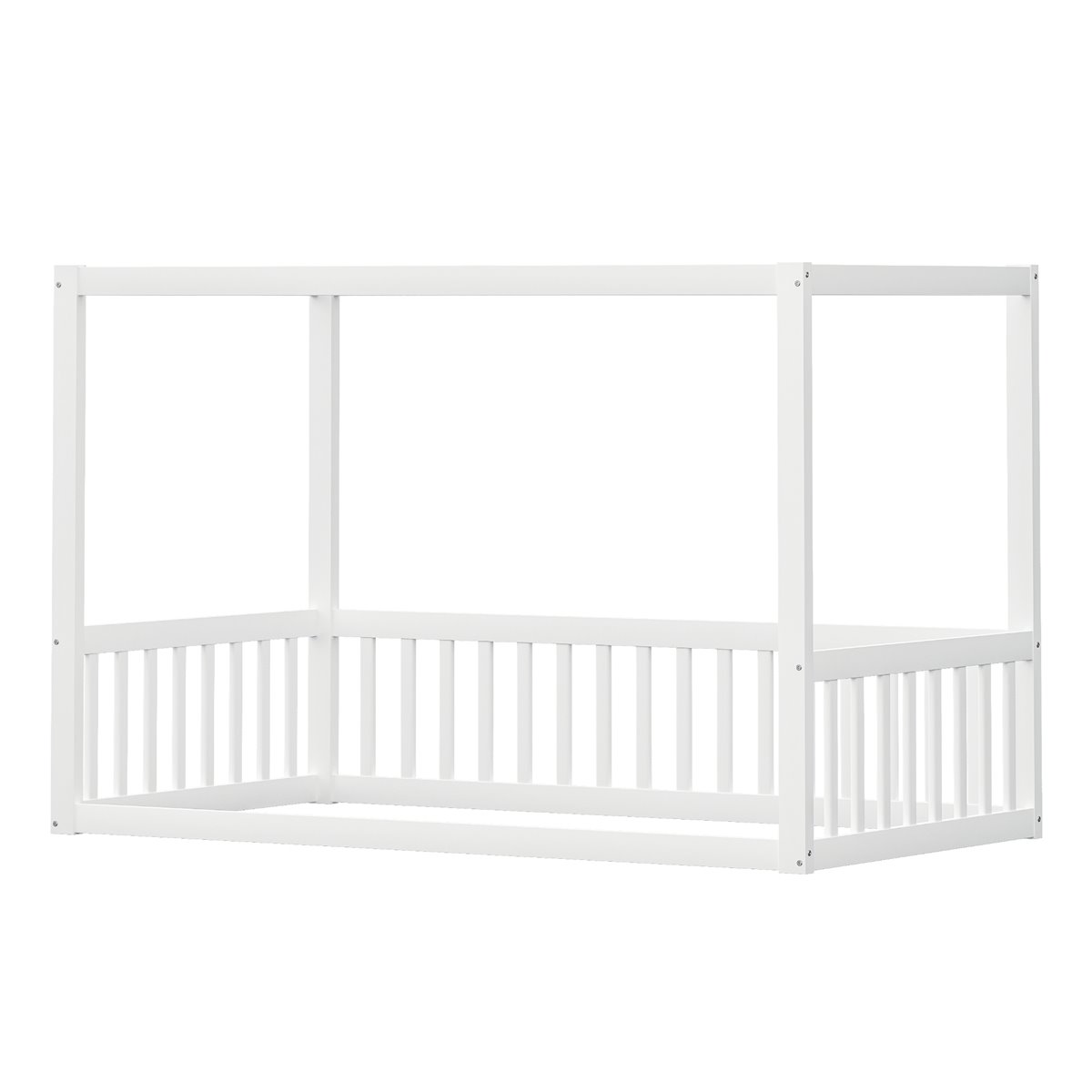 - Estructura de madera maciza: Fabricada con madera de pino de alta calidad, esta cama es robusta, estable y duradera, ofreciendo una base sólida y segura para el descanso de los más pequeños. La estructura está pensada para colocar el colchón directamente sobre el suelo, lo que minimiza los riesgos de caídas y es más segura para niños activos.