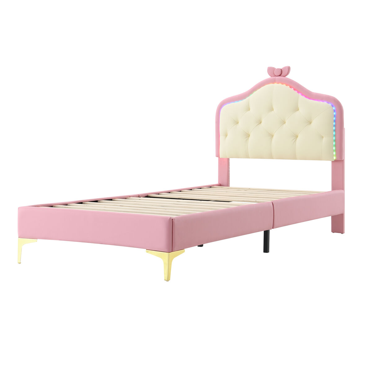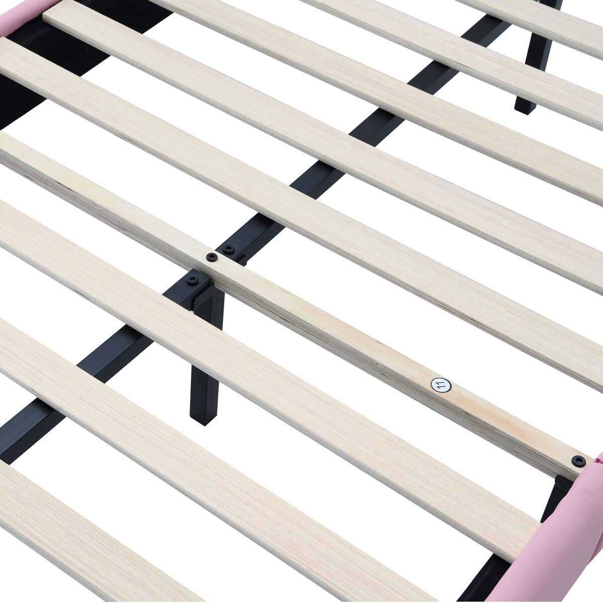 El cabecero presenta un diseño elegante, con una forma ondulada combinada con tiradores decorativos, que dan a la cama una estética moderna única. Un lazo rosa en la cabecera agrega un toque divertido, un toque encantador que agrega una cualidad acogedora a esta cama.