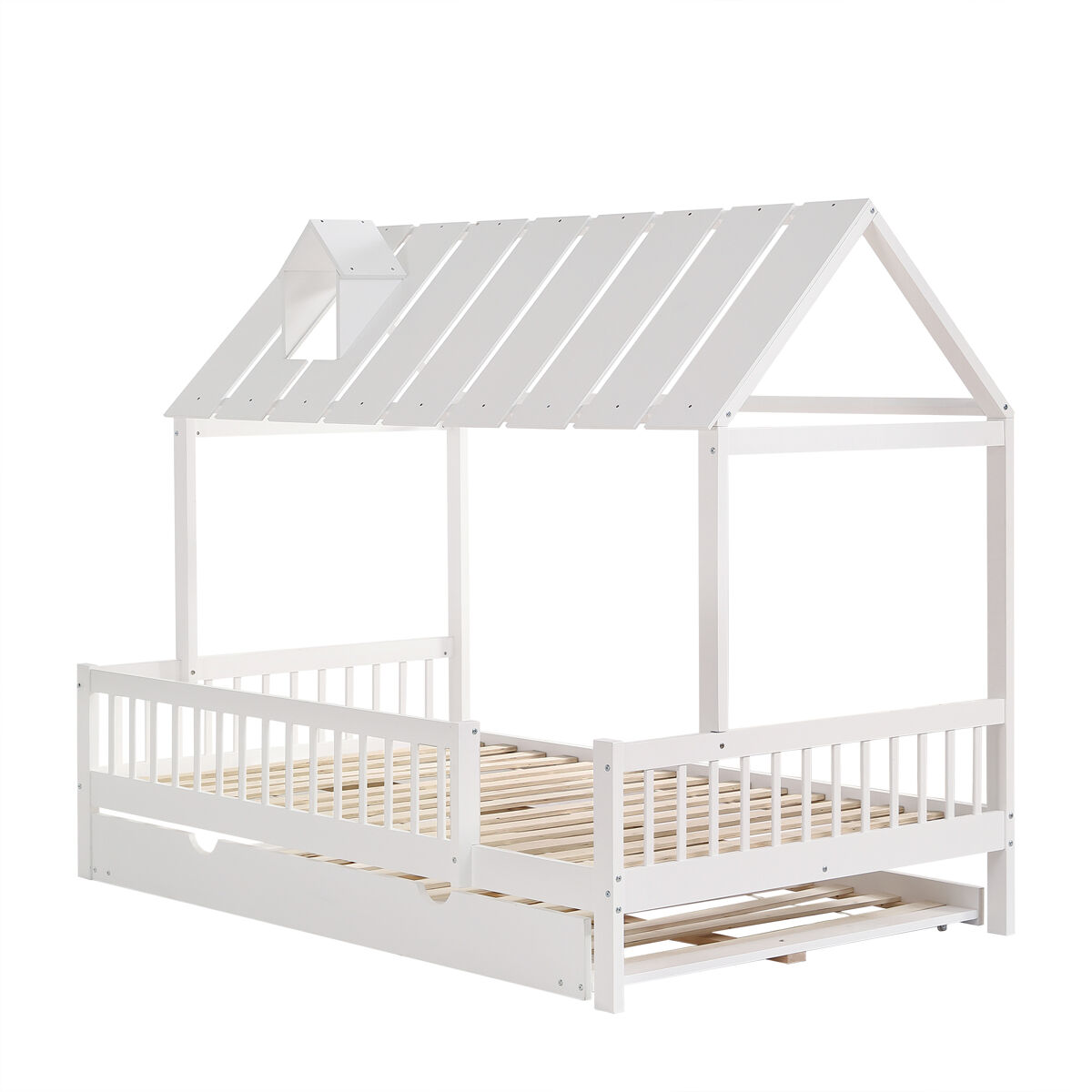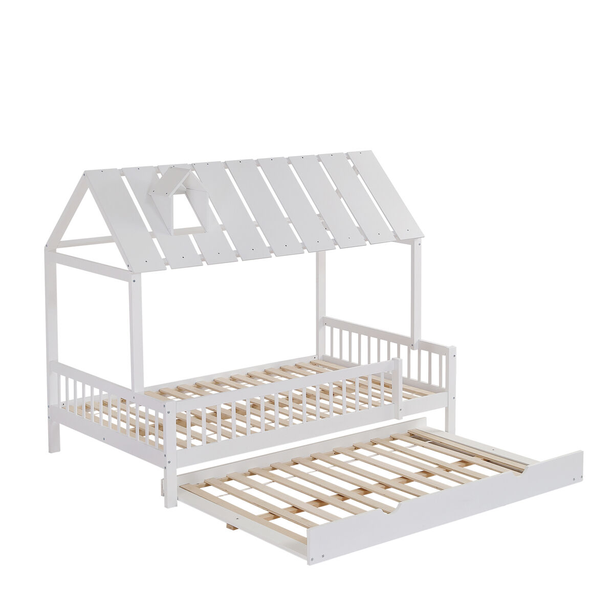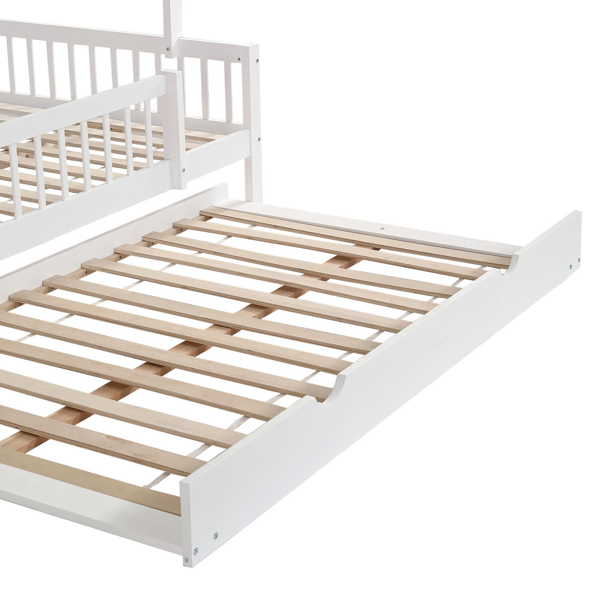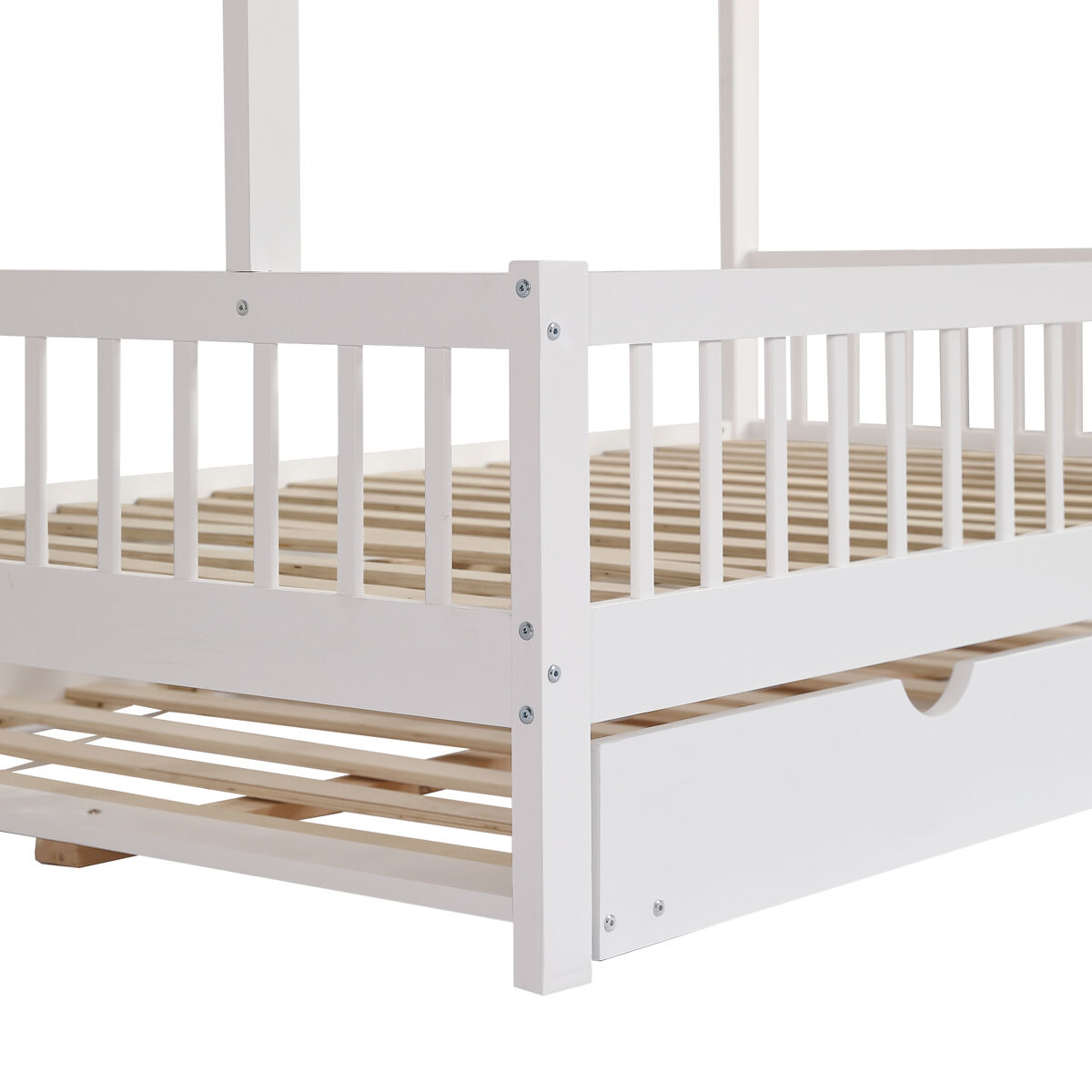Fabricada con MDF de alta calidad y pino blanco, la cama combina una construcción sólida con una apariencia hermosa. Viene con barandas de cama en 3 lados y un robusto somier de láminas para garantizar la seguridad y estabilidad de su hijo durante el sueño.