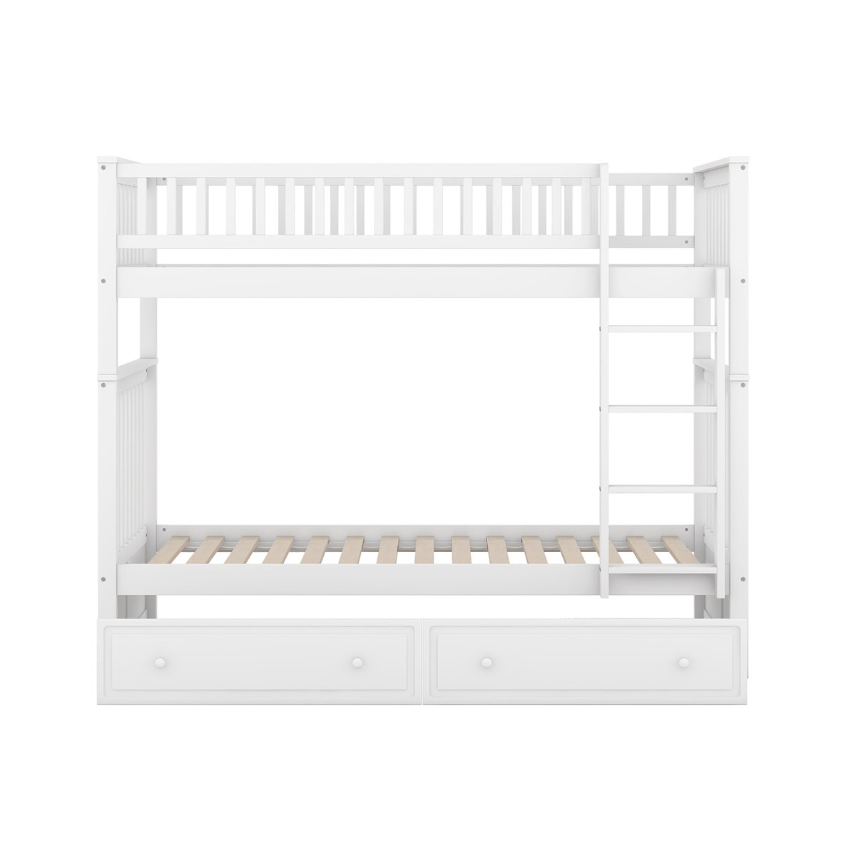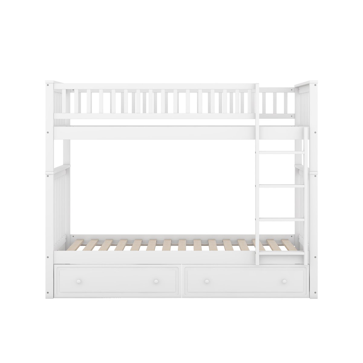 Con escalera, rieles y cajones, esta litera tiene un aspecto minimalista y encaja perfectamente en el dormitorio de tus hijos.